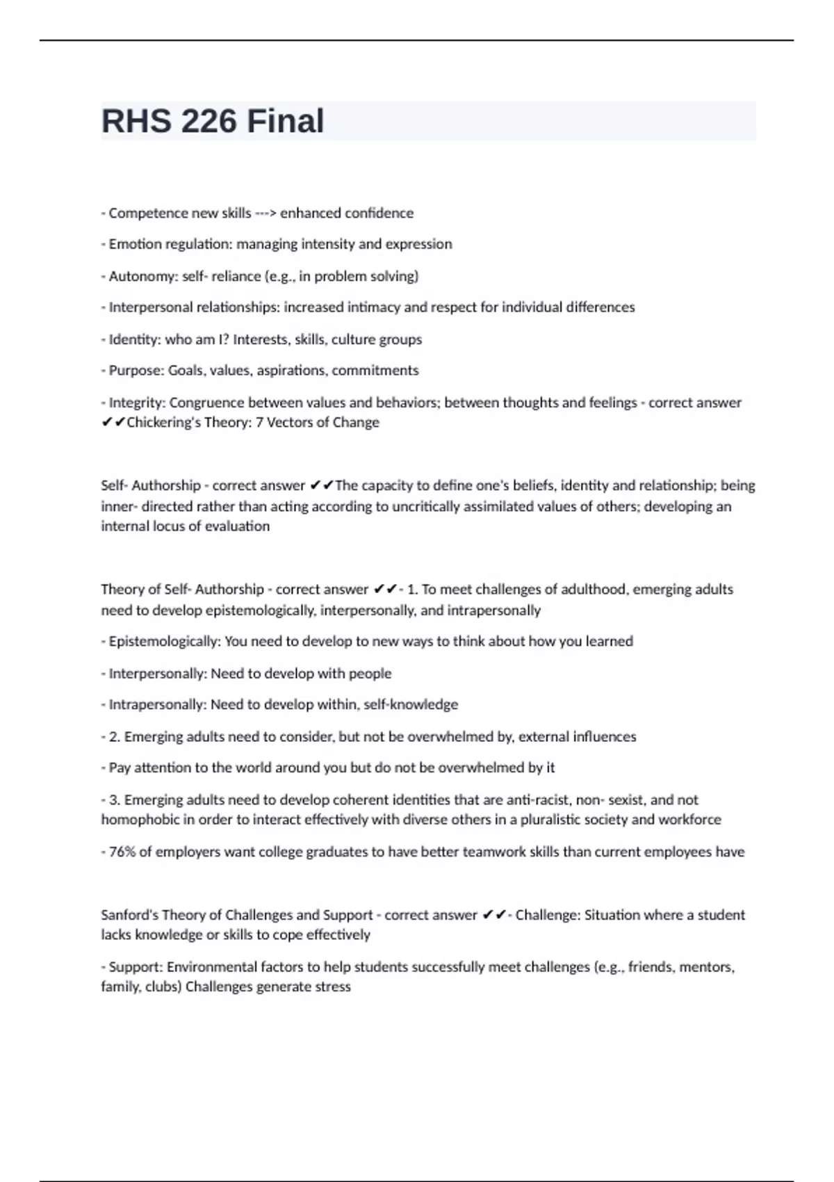 Theory of Self- Authorship - correct answer ✔✔- 1. To meet challenges of adulthood, emerging adults