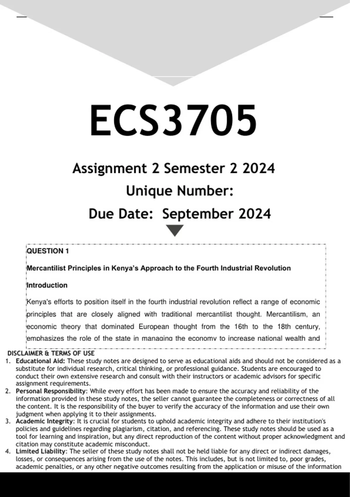 4. Limited Liability: The seller of these study notes shall not be held liable for any direct or indirect damages,