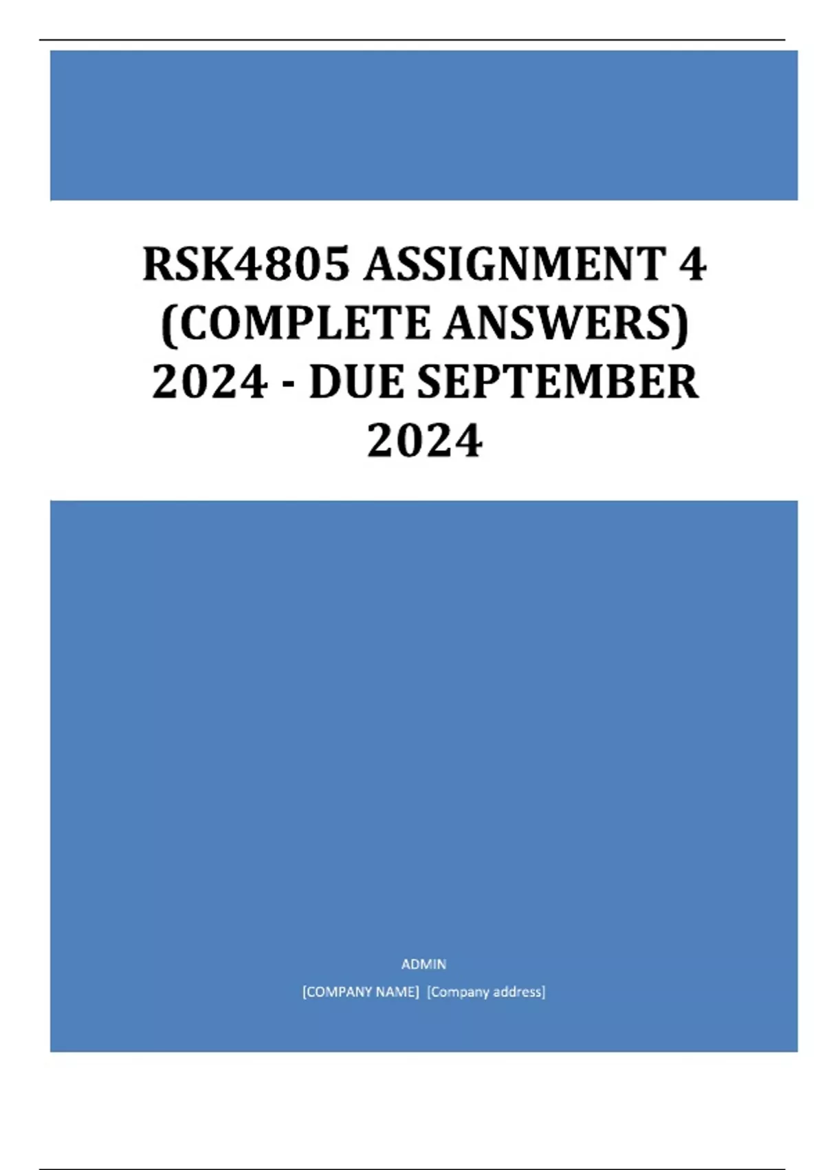 RSK4805 Assignment 4 (COMPLETE ANSWERS) 2024 - DUE September 2024.