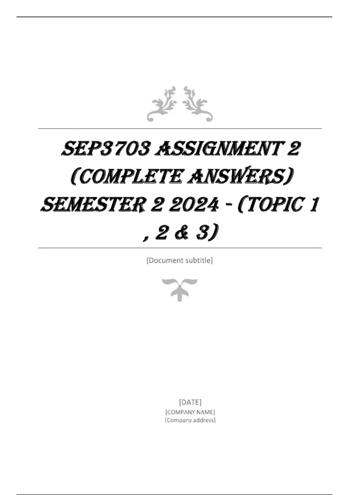 SEP3703 Assignment 2 (COMPLETE ANSWERS) Semester 2 2024 - (TOPIC 1 , 2 & 3)