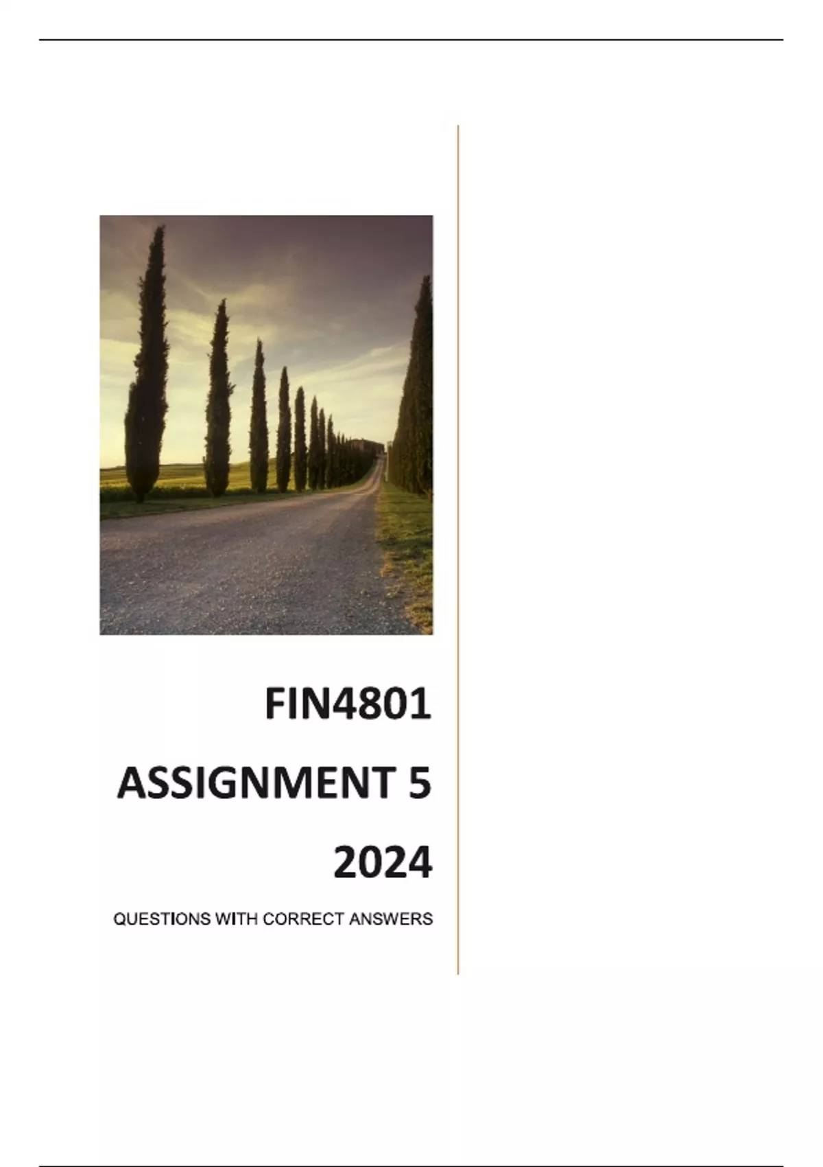 FIN4801 Assignment 5 (COMPLETE ANSWERS) 2024