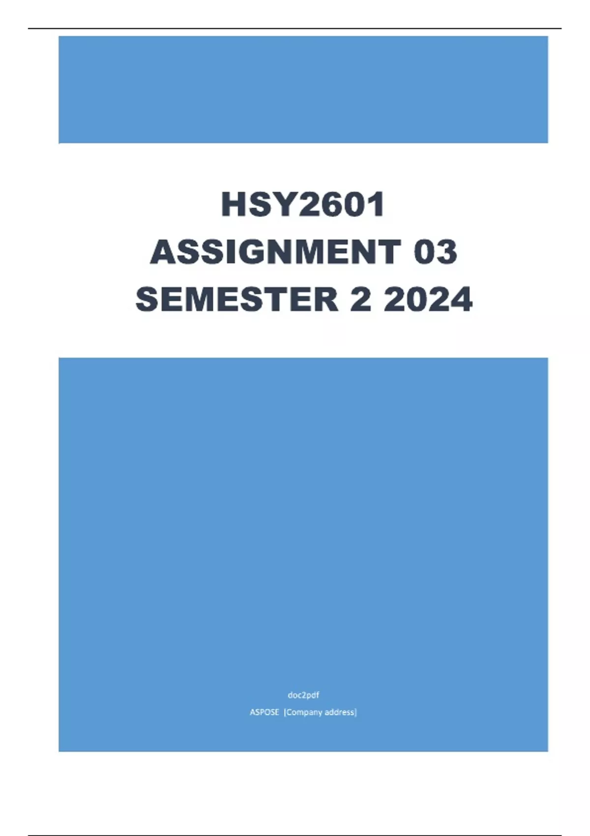 HSY2601 Assignment 3 (DETAILED ANSWERS) Semester 2 2024