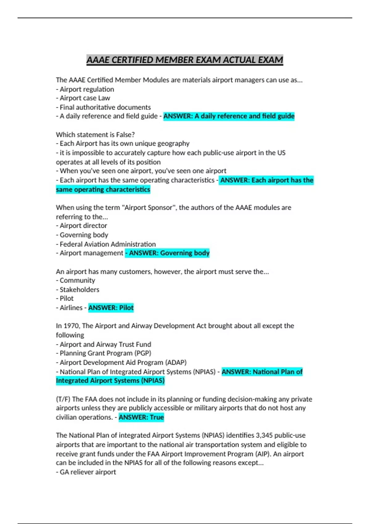 AAAE CERTIFIED MEMBER EXAM ACTUAL EXAM