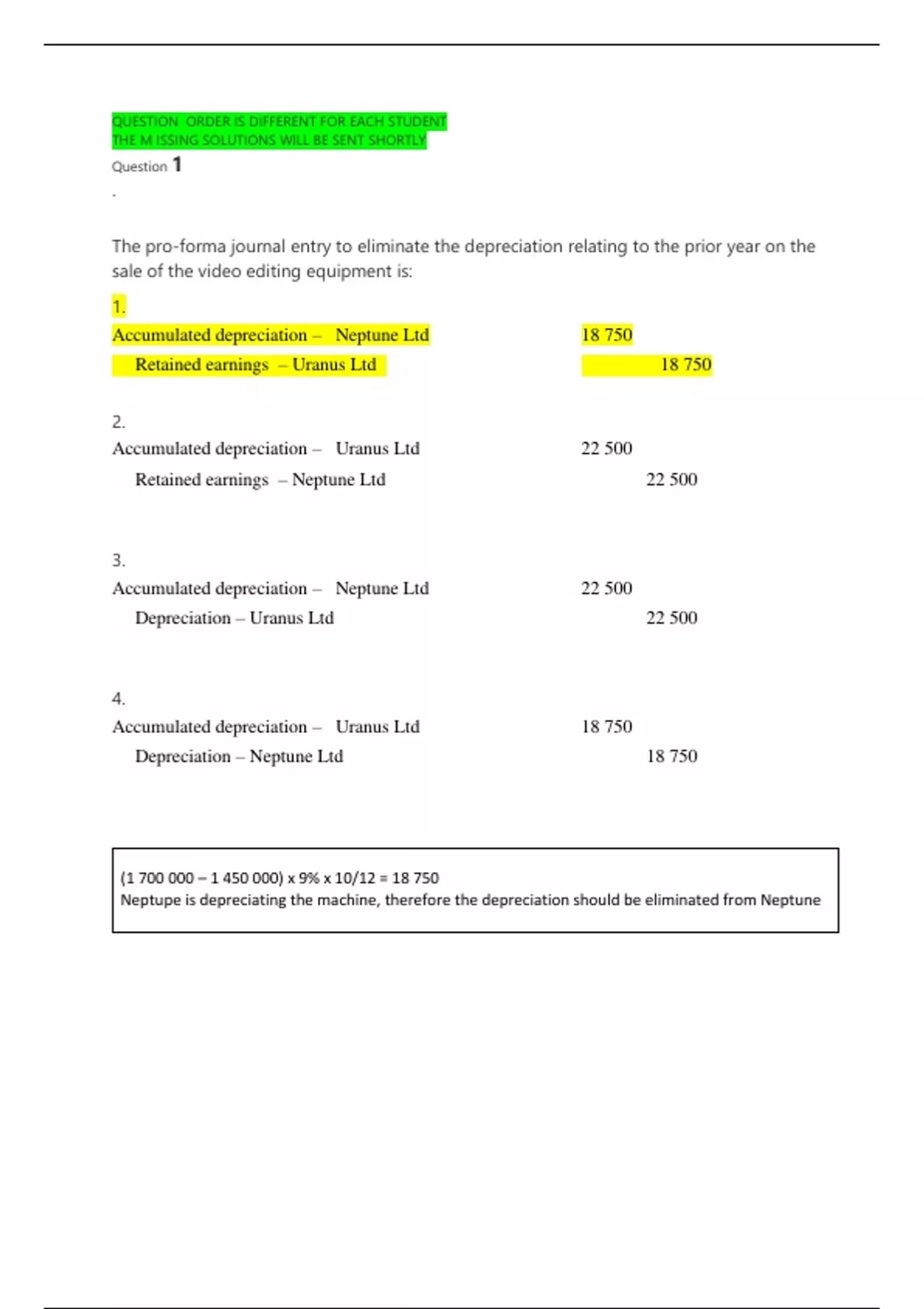 Neptupe is depreciating the machine, therefore the depreciation should be eliminated from Neptune