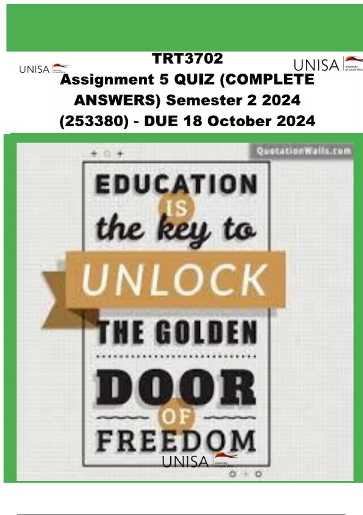 TRT3702 Assignment 5 QUIZ (COMPLETE ANSWERS) Semester 2 2024 (253380)- DUE 18 October 2024 (1) @UNISA