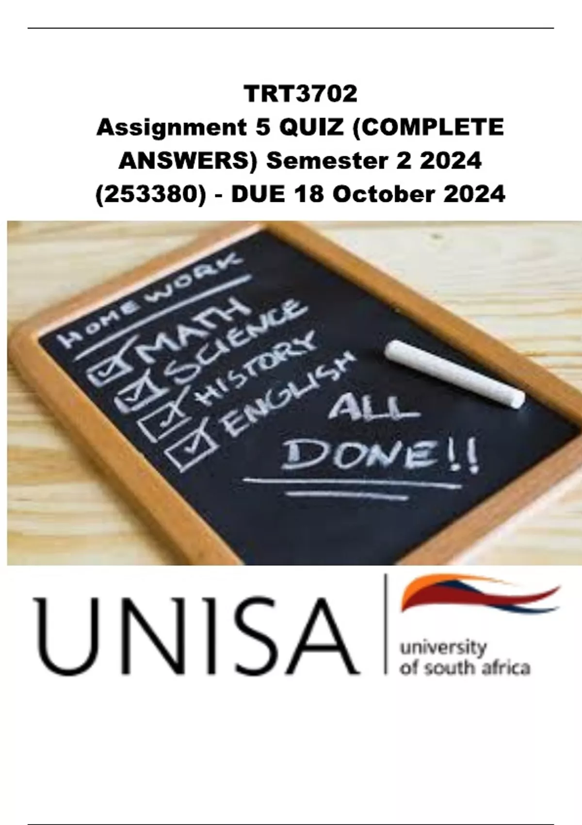 TRT3702 Assignment 5 Semester 2 2024 (253380)- DUE 18 October 2024 ALL ANSWERED