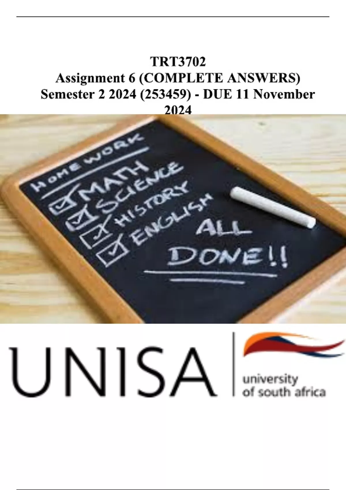TRT3702 Assignment 6 Semester 2 2024 (253459) - DUE 11 November 2024 ALL ANSWERED
