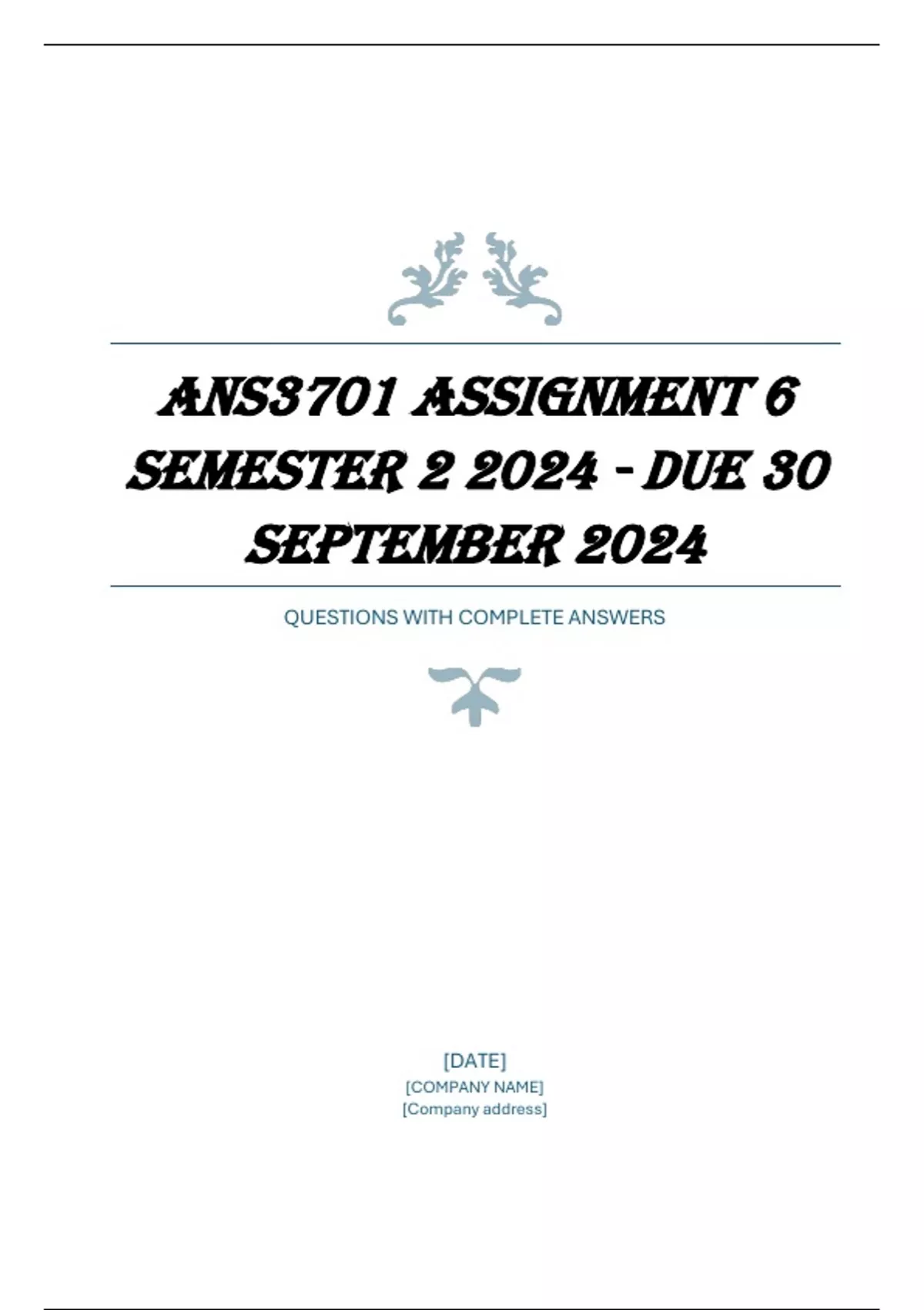 ANS3701 Assignment 6 Semester 2 2024 QUESTIONS WITH ANSWERS