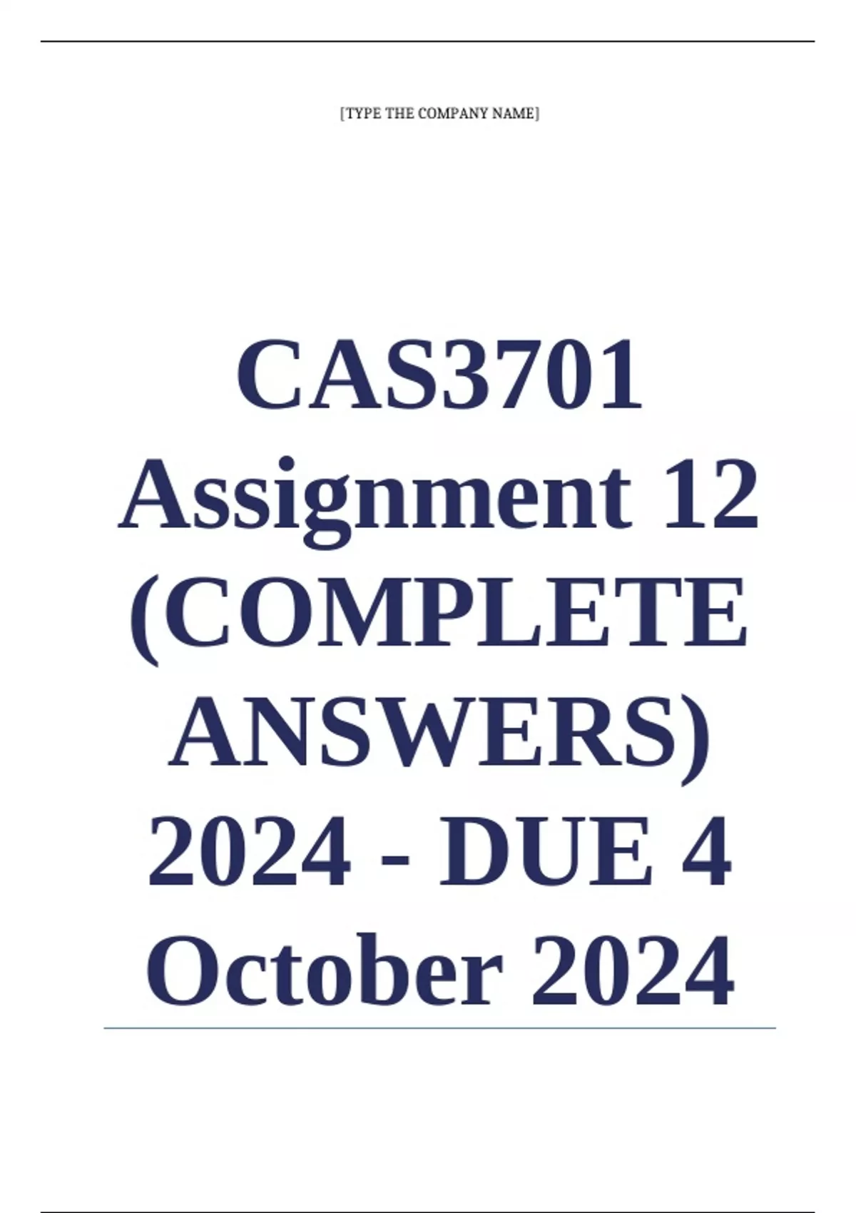 CAS3701 Assignment 12 (COMPLETE ANSWERS) 2024 - DUE 4 October 2024 ; 100% TRUSTED Complete, trusted solutions and explanations. Ensure your success with us..