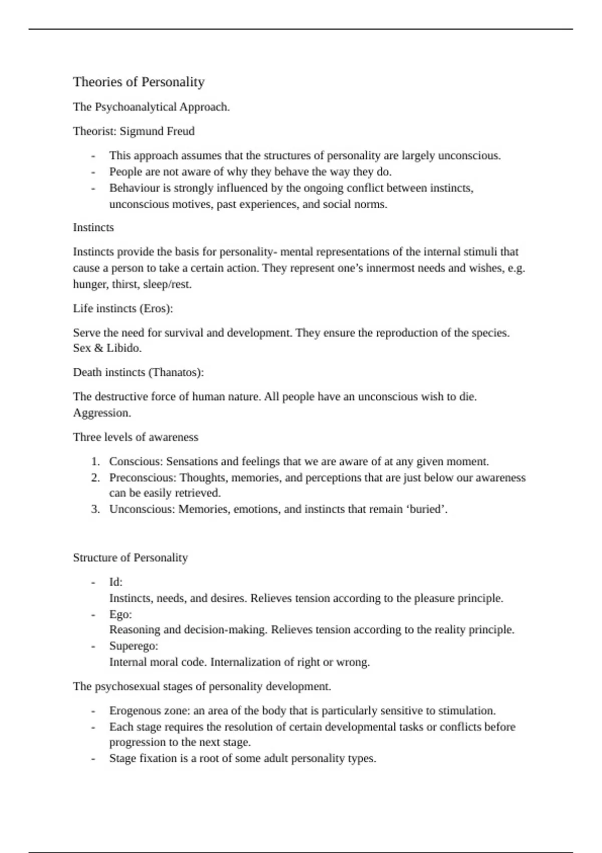 The document "Personality Psychology" provides a comprehensive overview of different theories of personality, including the psychoanalytical approach (Freud), neopsychoanalytical approach (Jung), lifespan approach (Erikson), behavioral approach (Skinner), social learning approach (Bandura), trait approach (Cattell and McCrae/Costa), and African theories of personality (Nwoye). It covers key concepts like personality structures, development stages, traits, archetypes, and personality assessments, discussing their features, criticisms, and applications in understanding human behavior. The document integrates both Western and African perspectives, offering a holistic view of personality psychology.