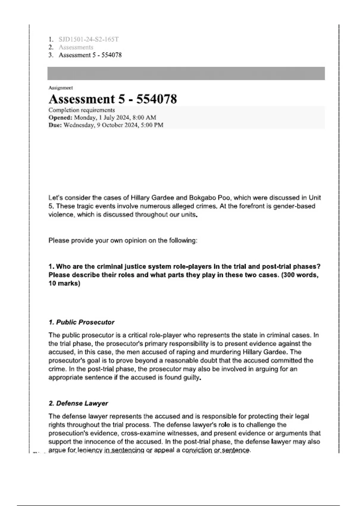SJD1501 Assignment 5 - 554078 (QUALITY ANSWERS) Semester 2 2024 DUE 9 OCTOBER 2024