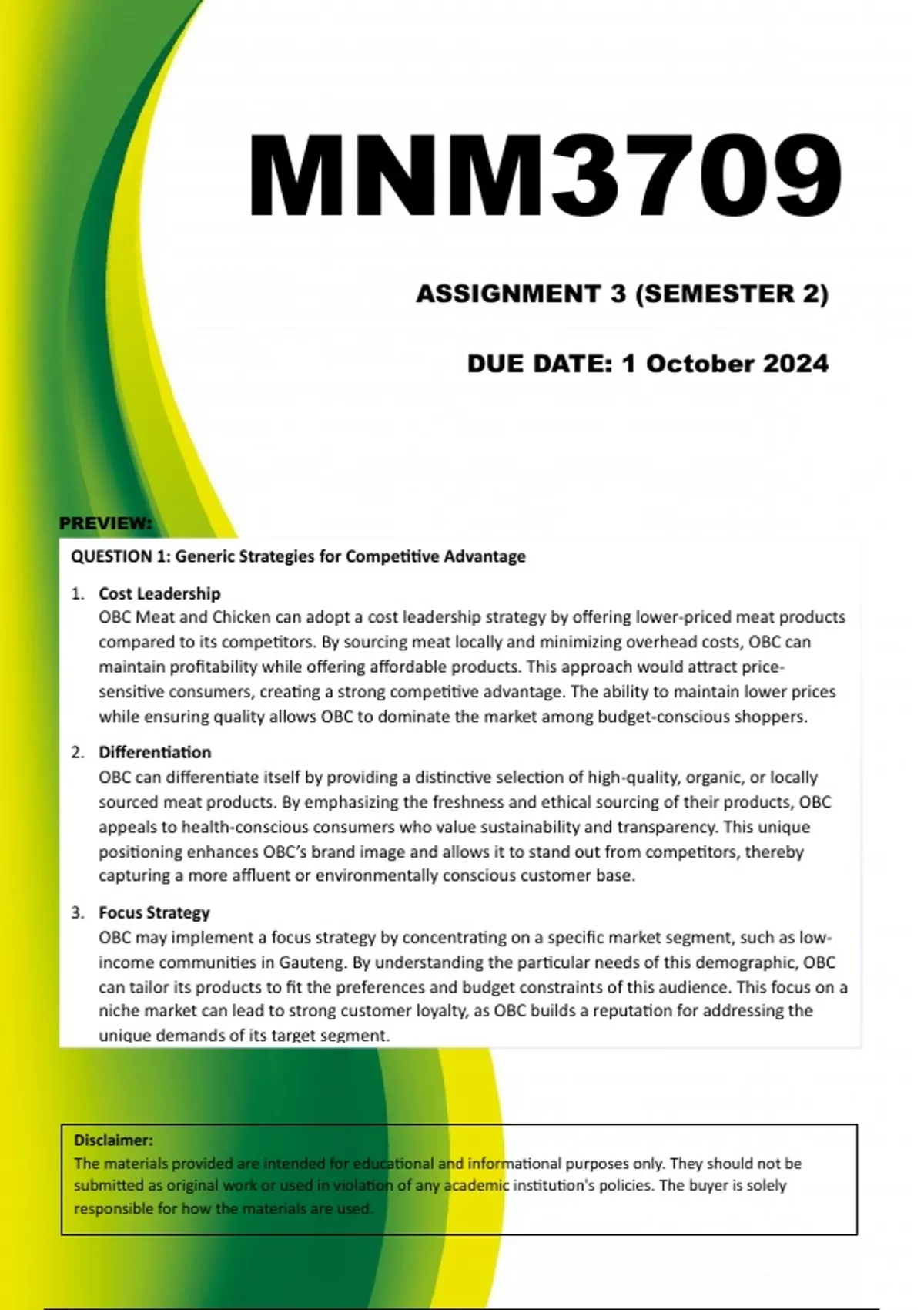 MNM3709 Assignment 3 (COMPLETE ANSWERS) Semester 2 2024 - DUE 1 October 2024