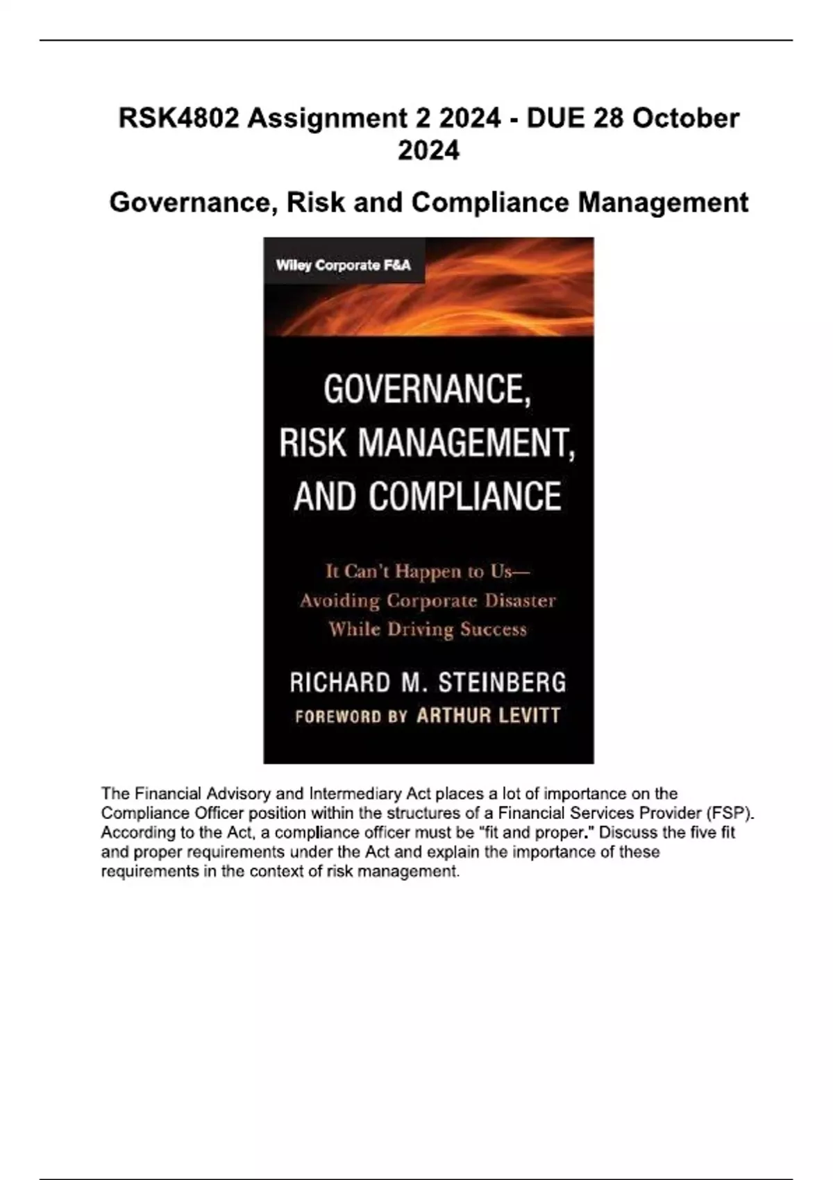 RSK4802 Assignment 2 2024 - DUE 28 October 2024 allanswered
