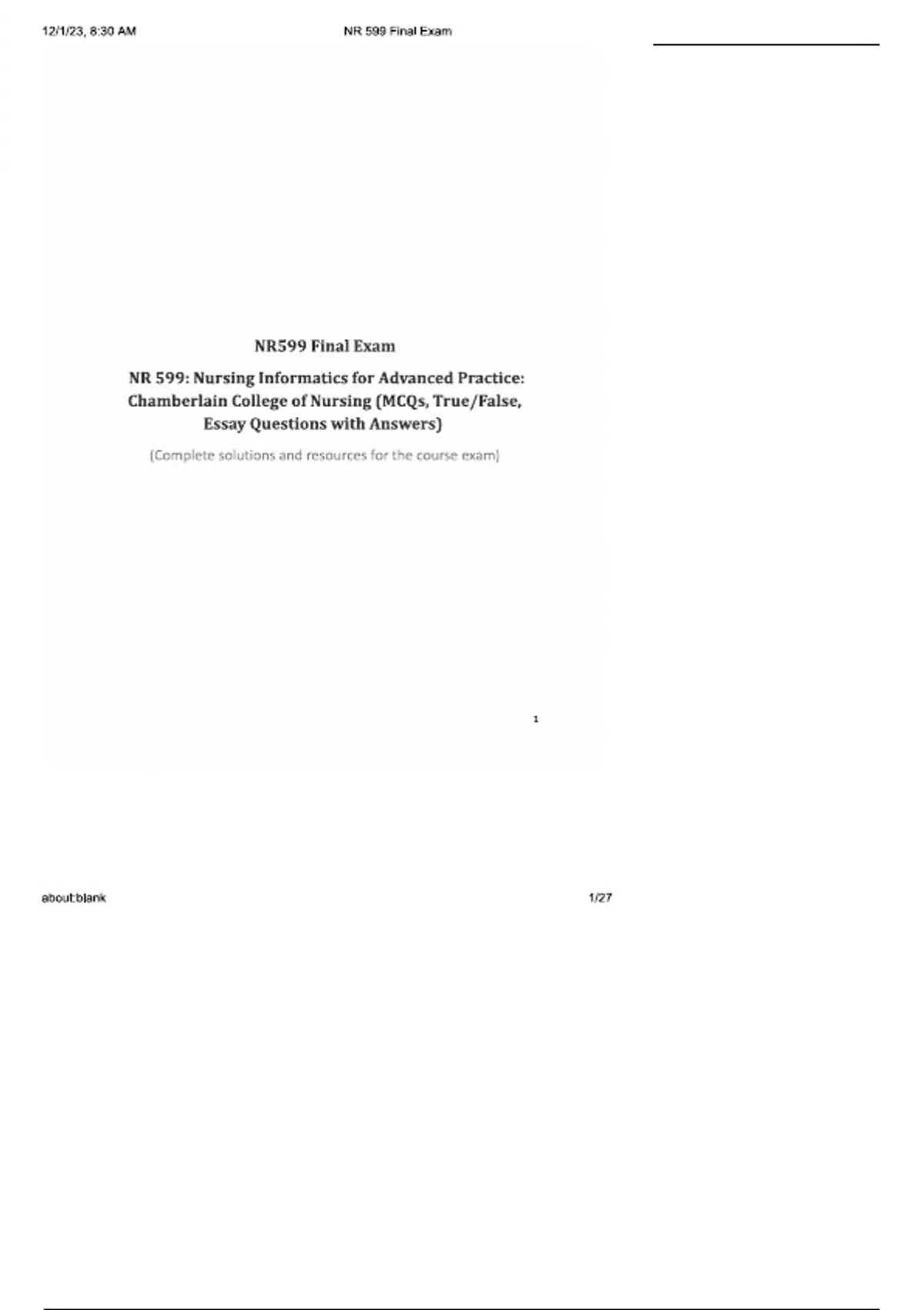 NR599 Final Exam NR 599 Nursing Informatics for Advanced Practice