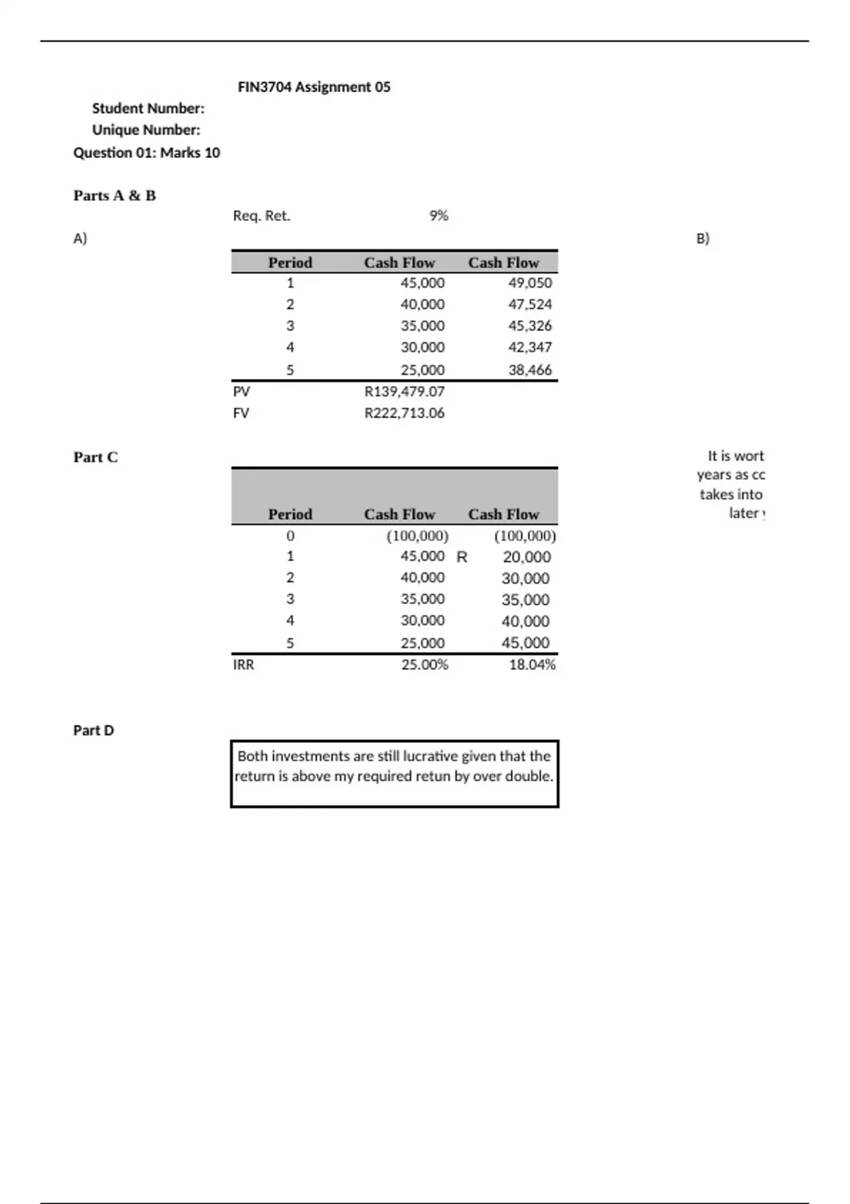 Period Cash Flow Cash Flow later yeasrs cashflo