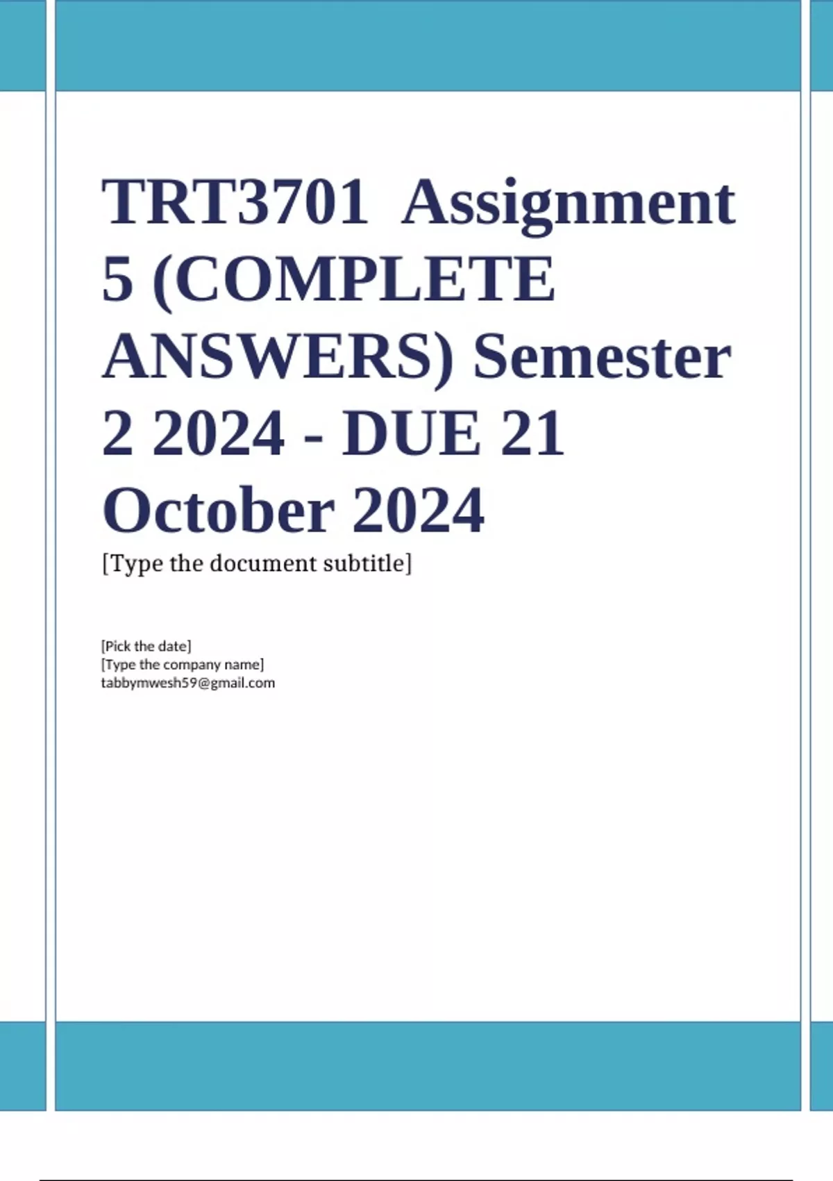 TRT3701Assignment 5 (COMPLETE ANSWERS) Semester 2 2024 - DUE 21
