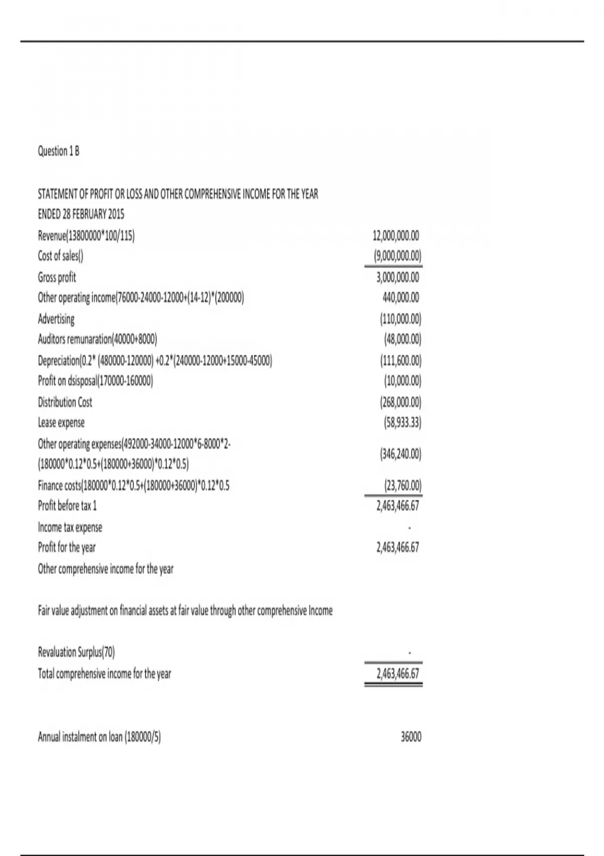 Annual instalment on loan (180000/5) 36000
