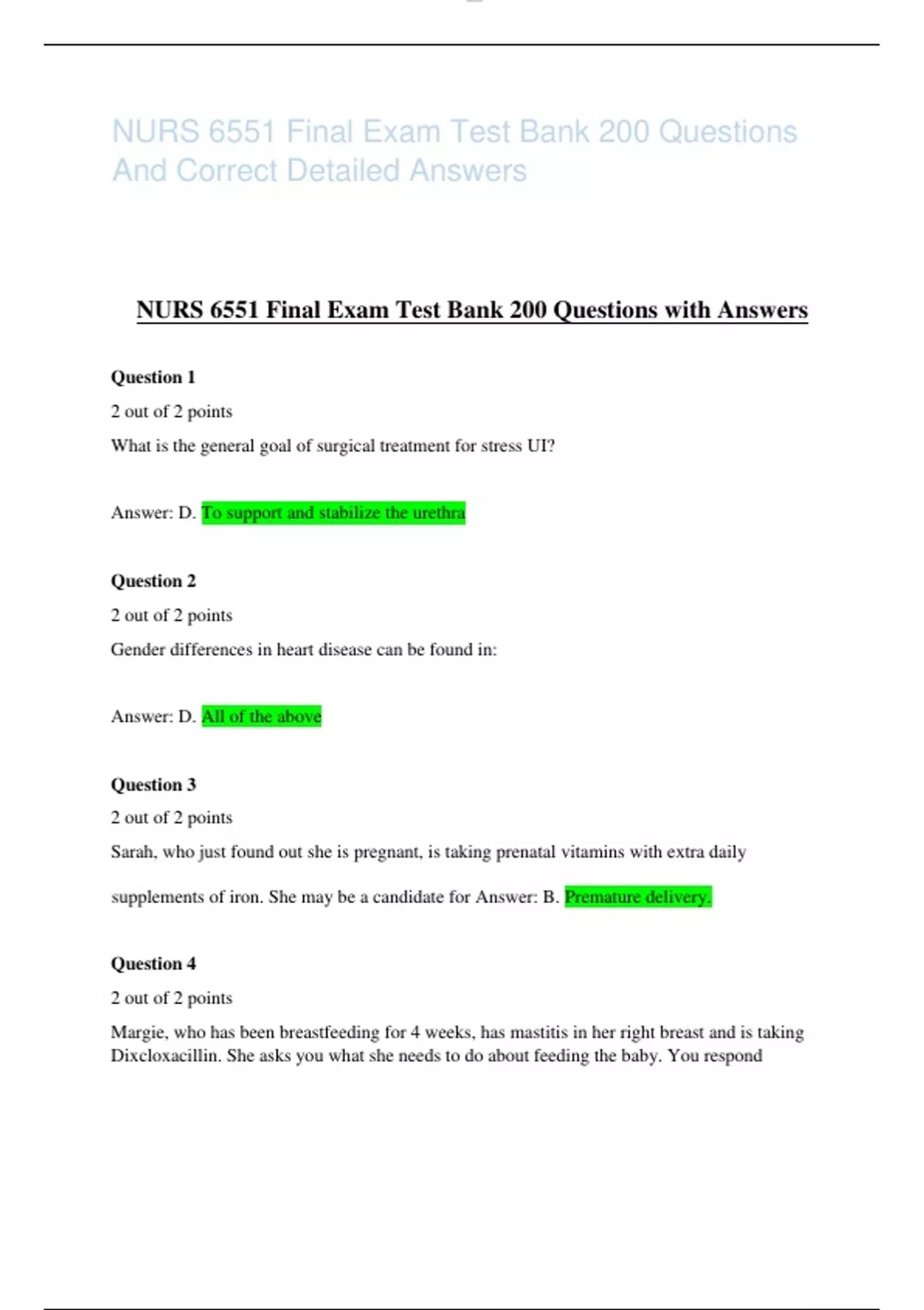 NURS 6551 Final Exam Test Bank 200 Questions And Correct Detailed Answers