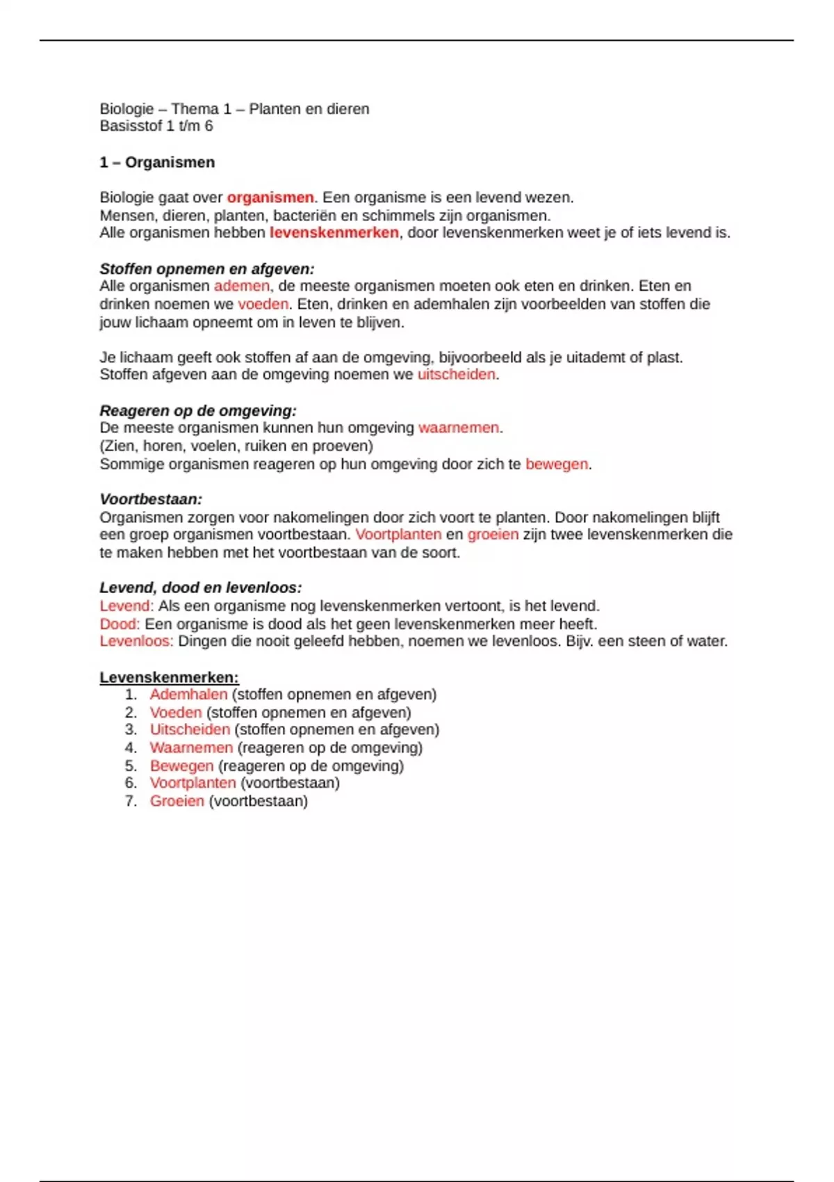 In dit document worden paragraven 1 t/m 6 van hoofdstuk 1 uit bvj 1 vwo samengevat. Begrippen zijn rood