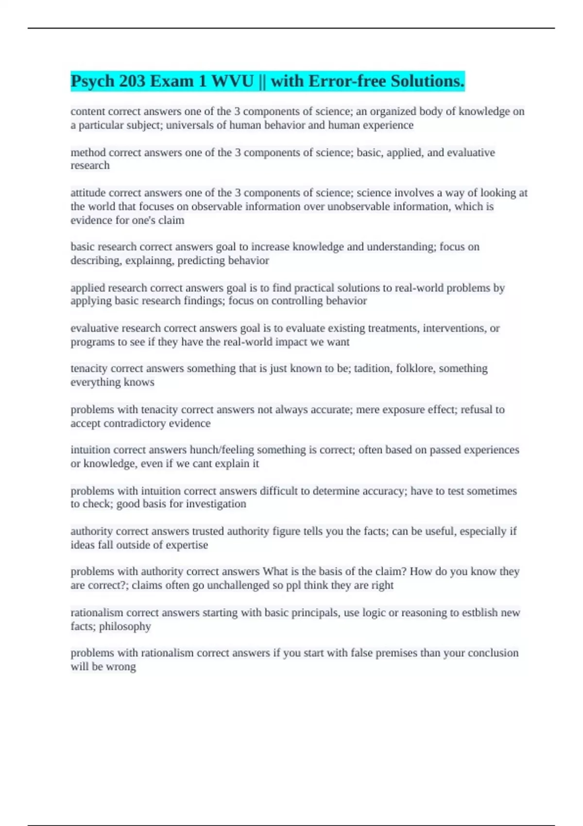 problems with tenacity correct answers not always accurate; mere exposure effect; refusal to