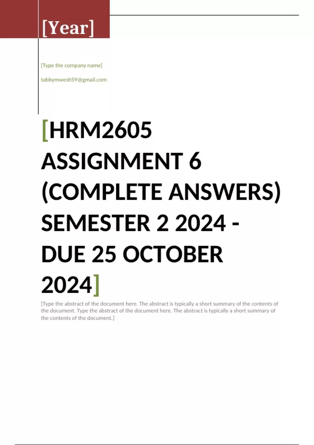 HRM2605 Assignment 6 (COMPLETE ANSWERS) Semester 2 2024 - DUE