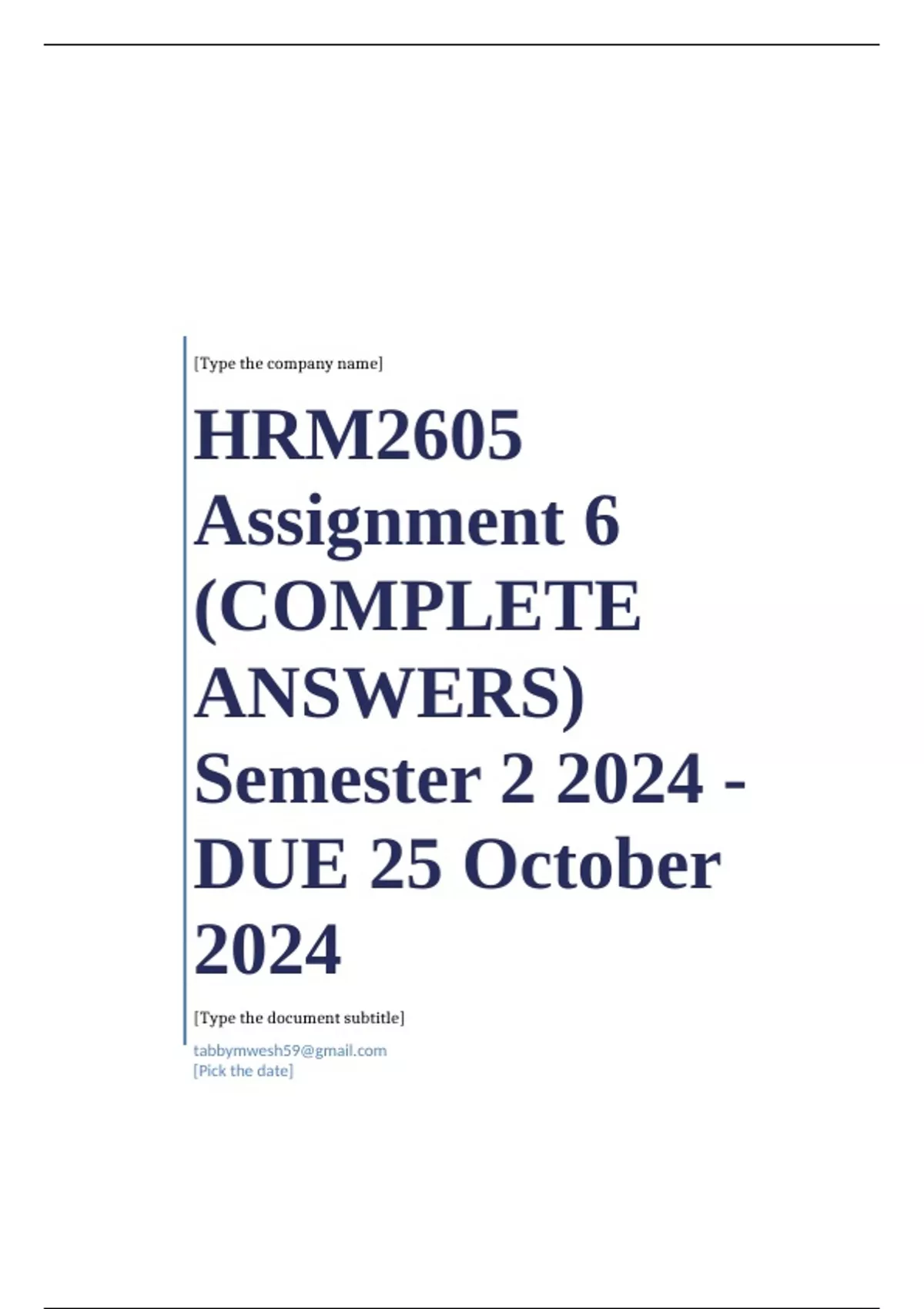 HRM2605 Assignment 6 (COMPLETE ANSWERS) Semester 2