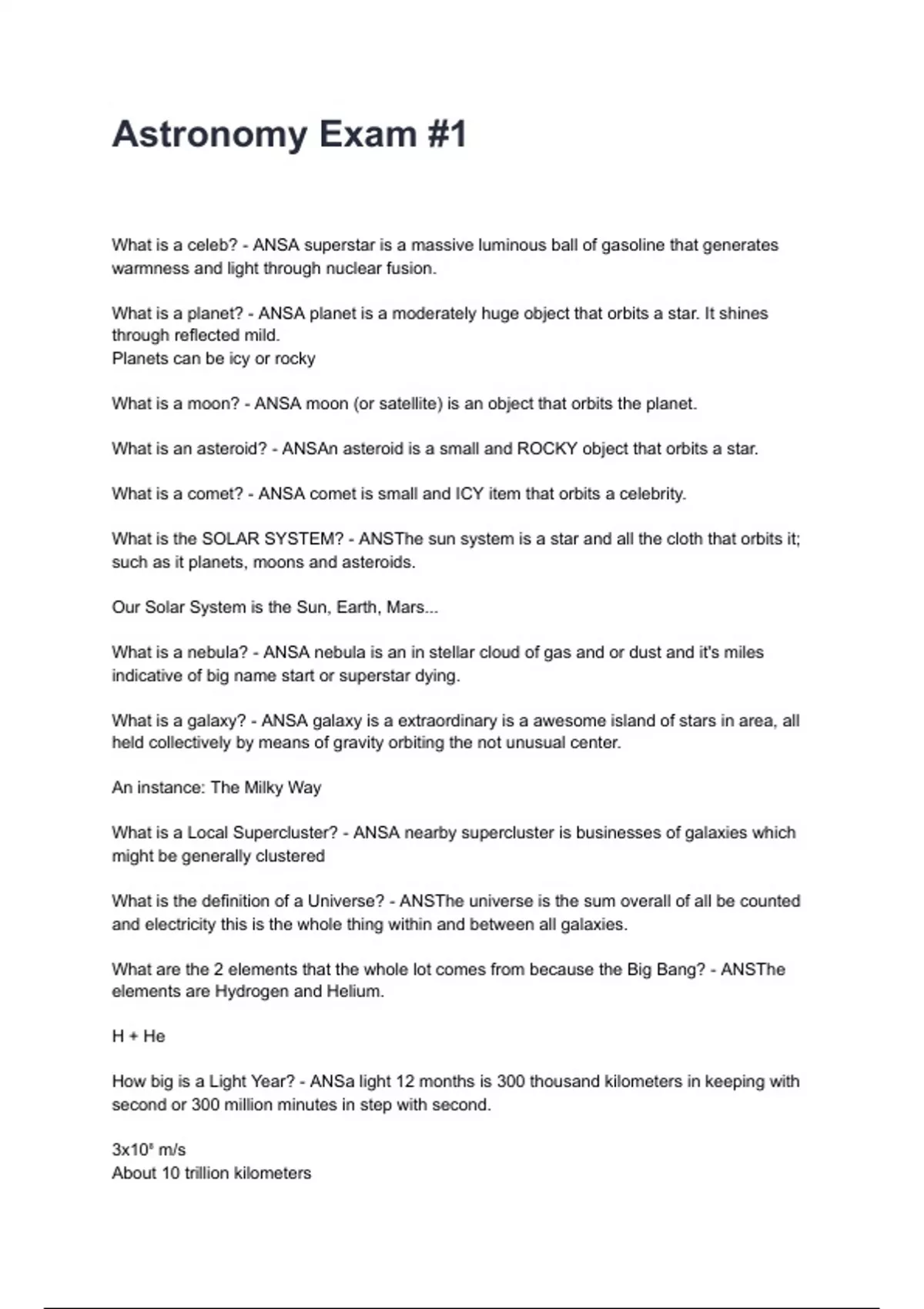Astronomy Exam #1