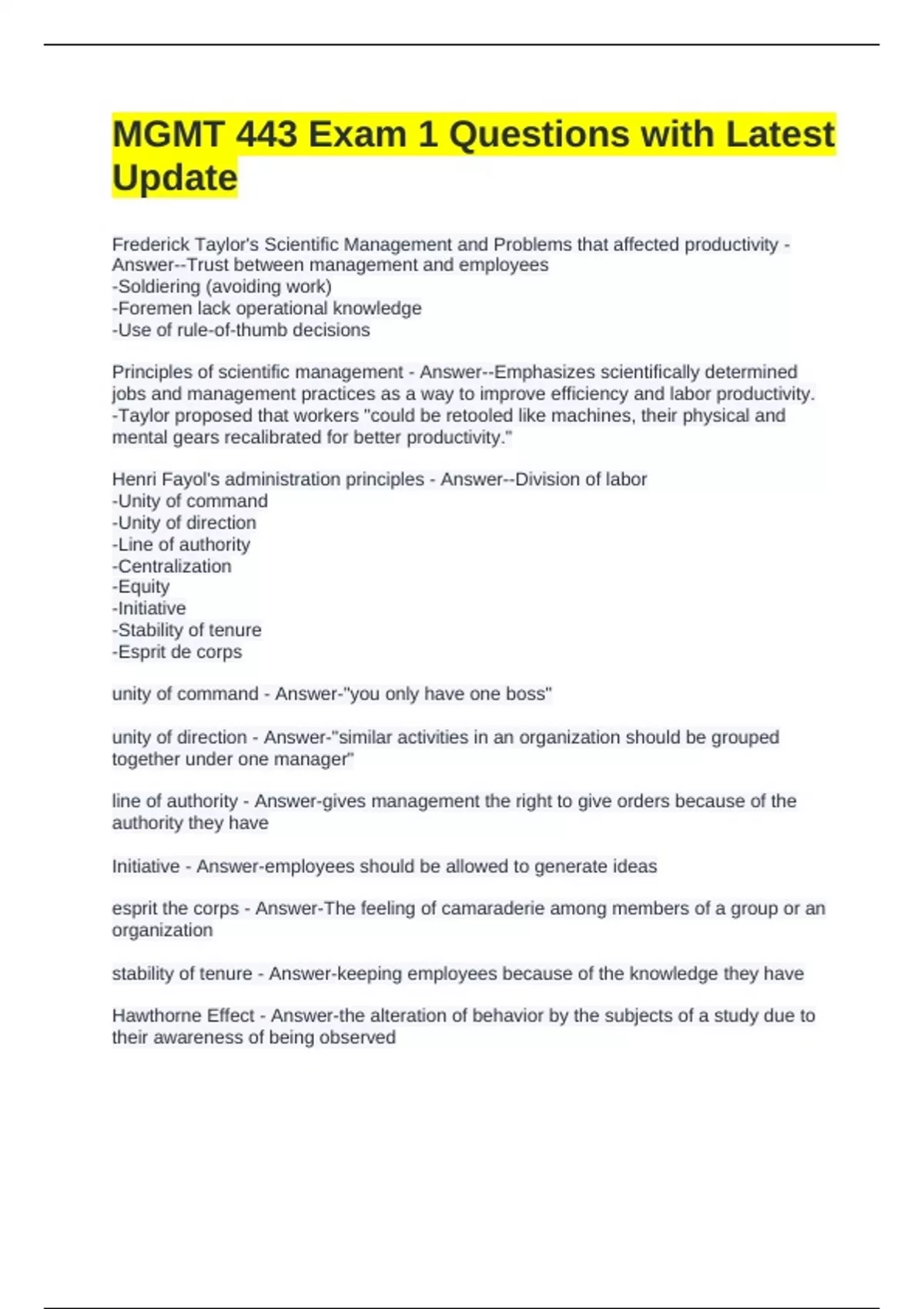 Principles of scientific management - Answer--Emphasizes scientifically determined