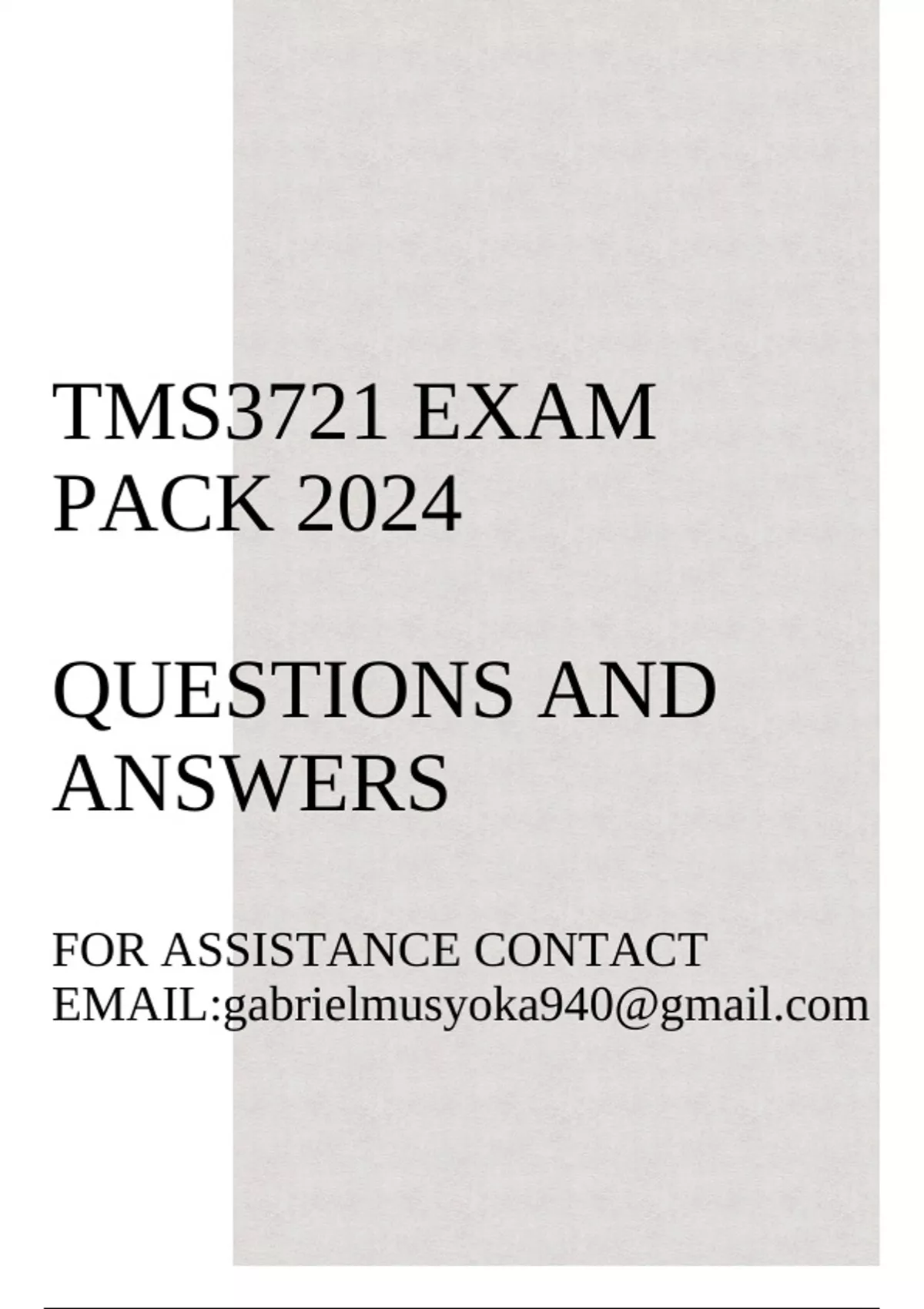 TMS3721 Exam pack 2024(Questions and answers) With accurate answers and assurance that they are in the exam