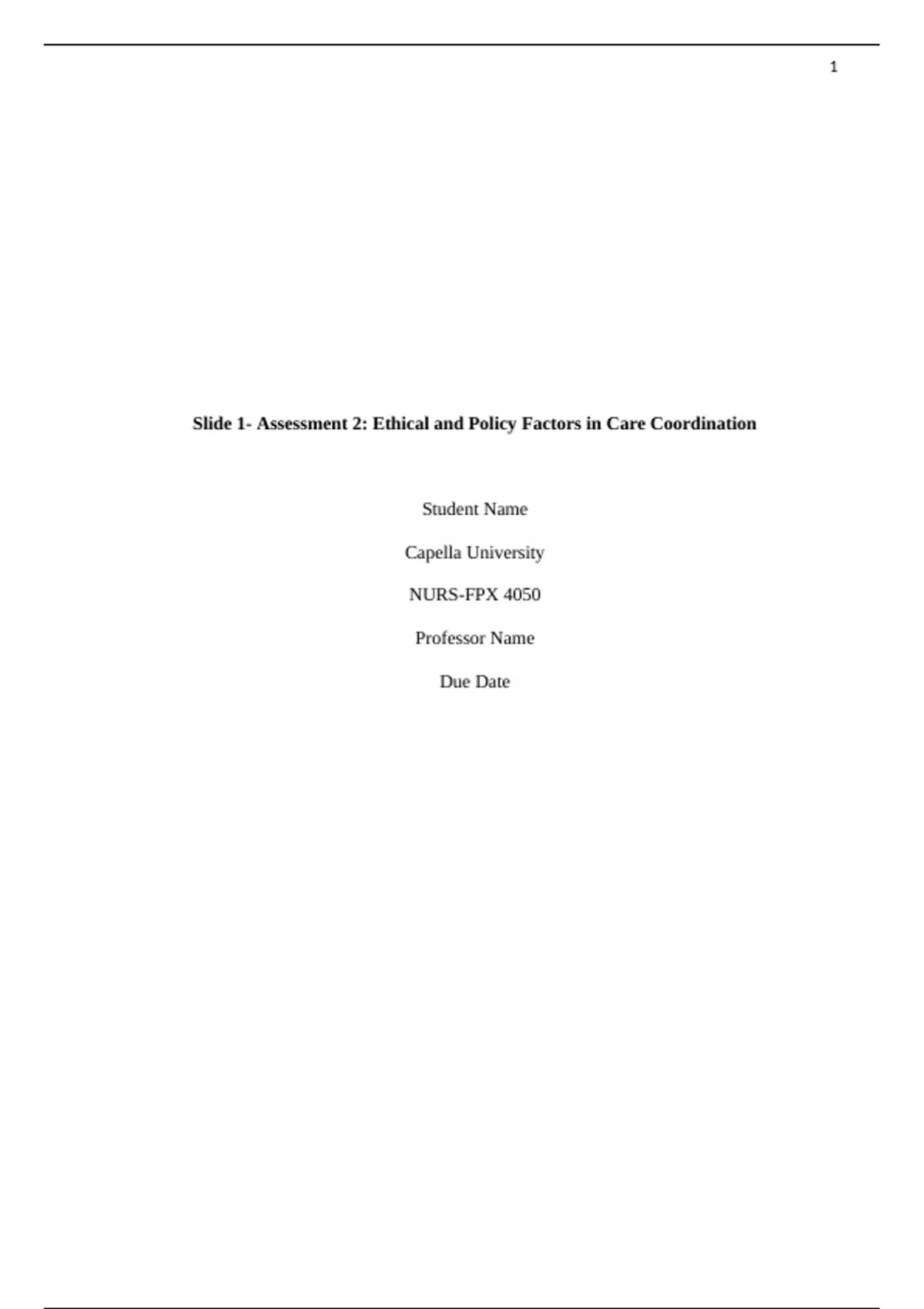Slide 1- Assessment 2: Ethical and Policy Factors in Care Coordination