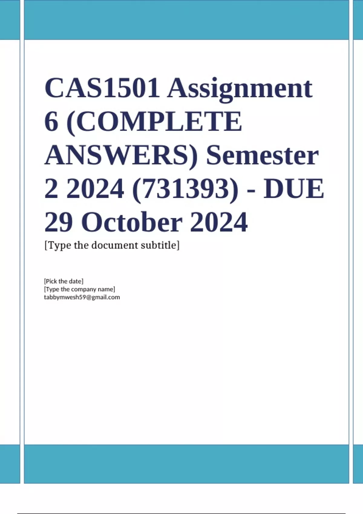 CAS1501 Assignment 6 (COMPLETE ANSWERS) Semester 2 2024 (731393)