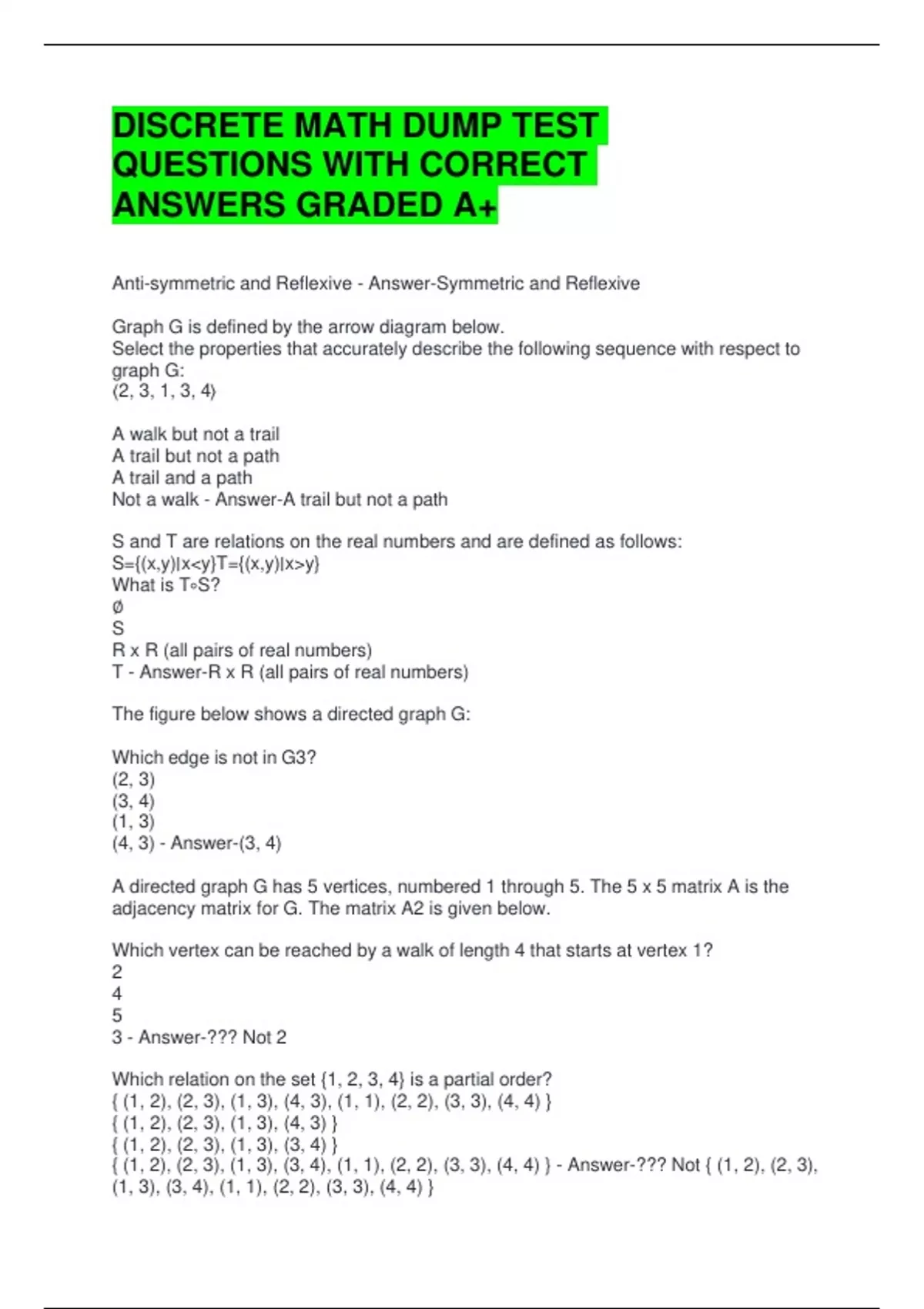 ANSWERS GRADED A+