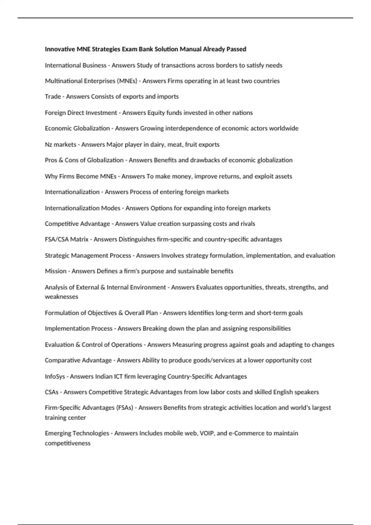 Multinational Enterprises (MNEs) - Answers Firms operating in at least two countries