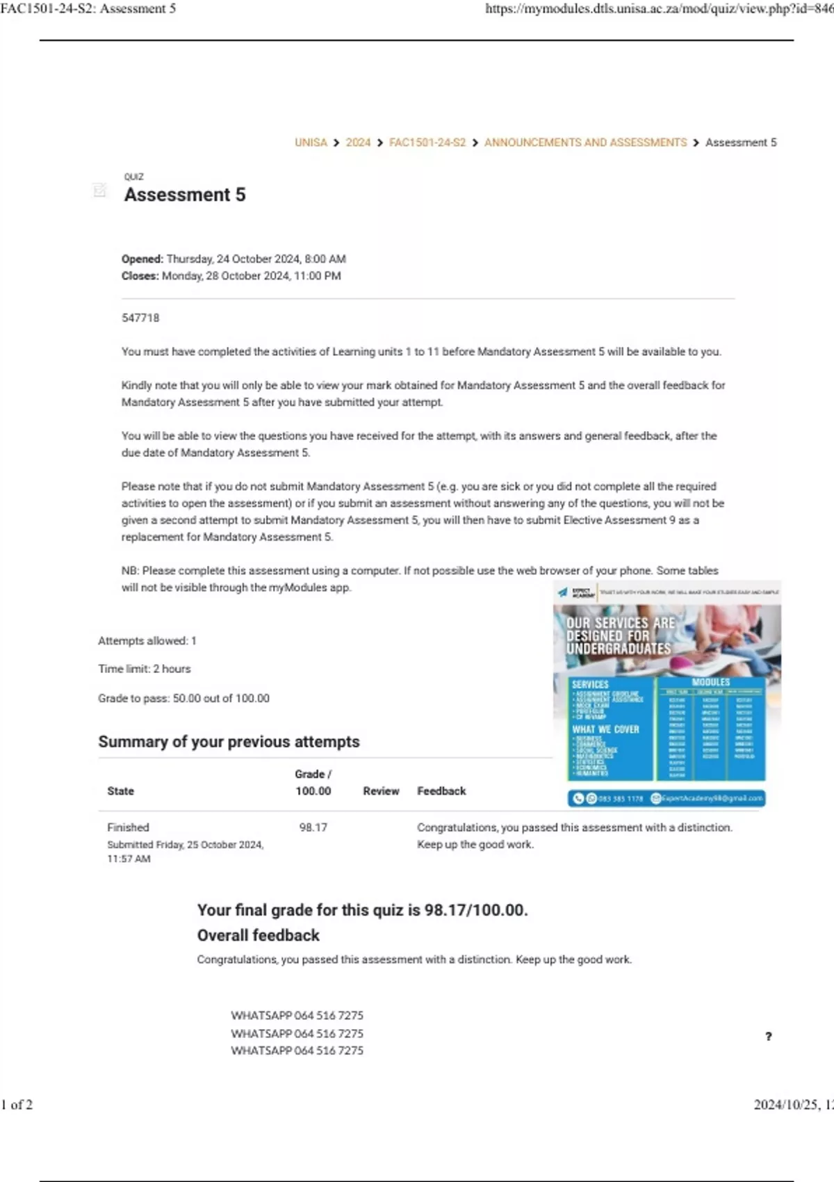 FAC1501-24-S2: Assessment 5 https://mymodules.dtls.unisa.ac.za/mod/quiz/view.php?id=846