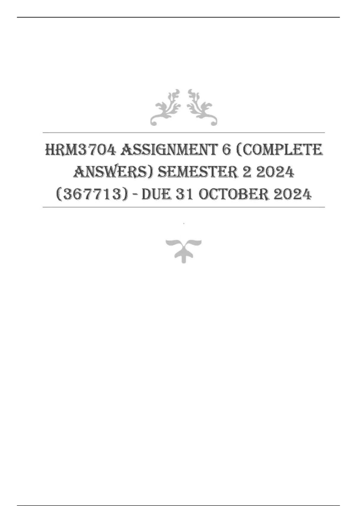 HRM3704 Assignment 6 (COMPLETE ANSWERS) Semester 2 2024 (367713) - DUE 31 October 2024