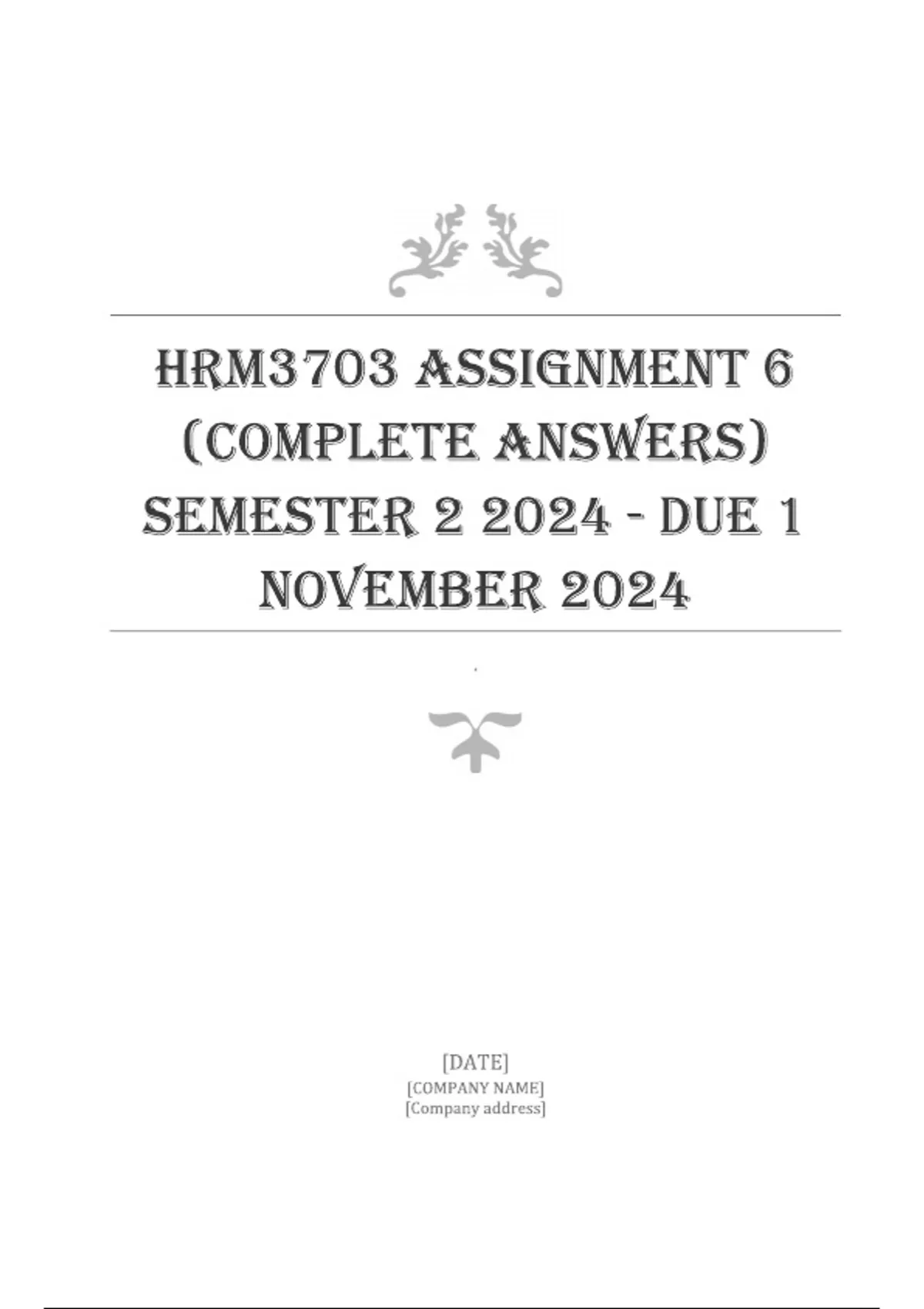 HRM3703 Assignment 6 (COMPLETE ANSWERS) Semester 2 2024 - DUE 1 November 2024