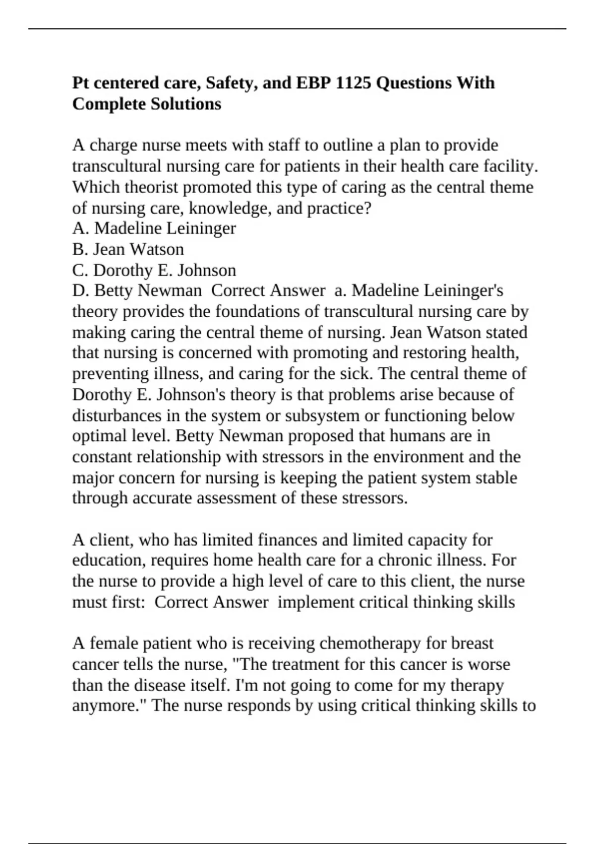 Pt centered care, Safety, and EBP 1125 Questions With Complete Solutions