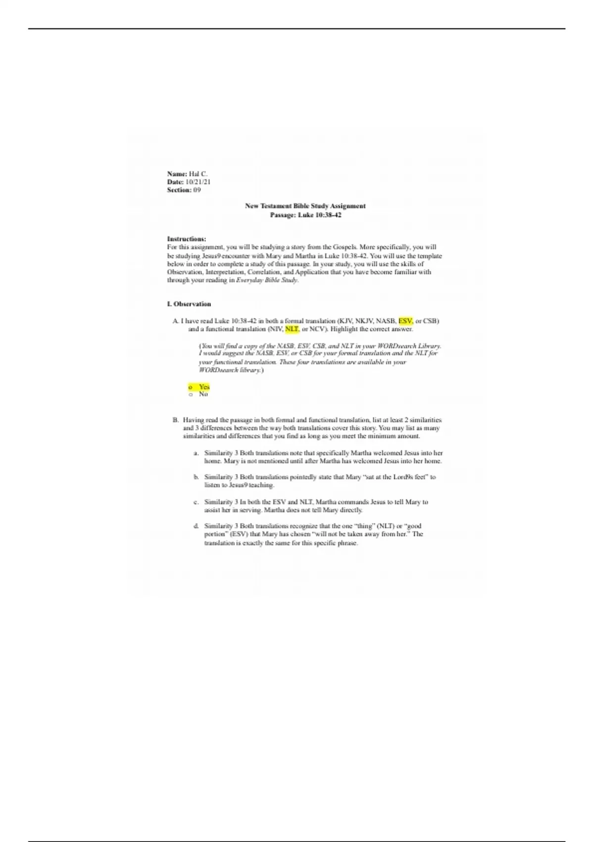 and a functional translation (NIV, NLT, or NCV). Highlight the correct answer.