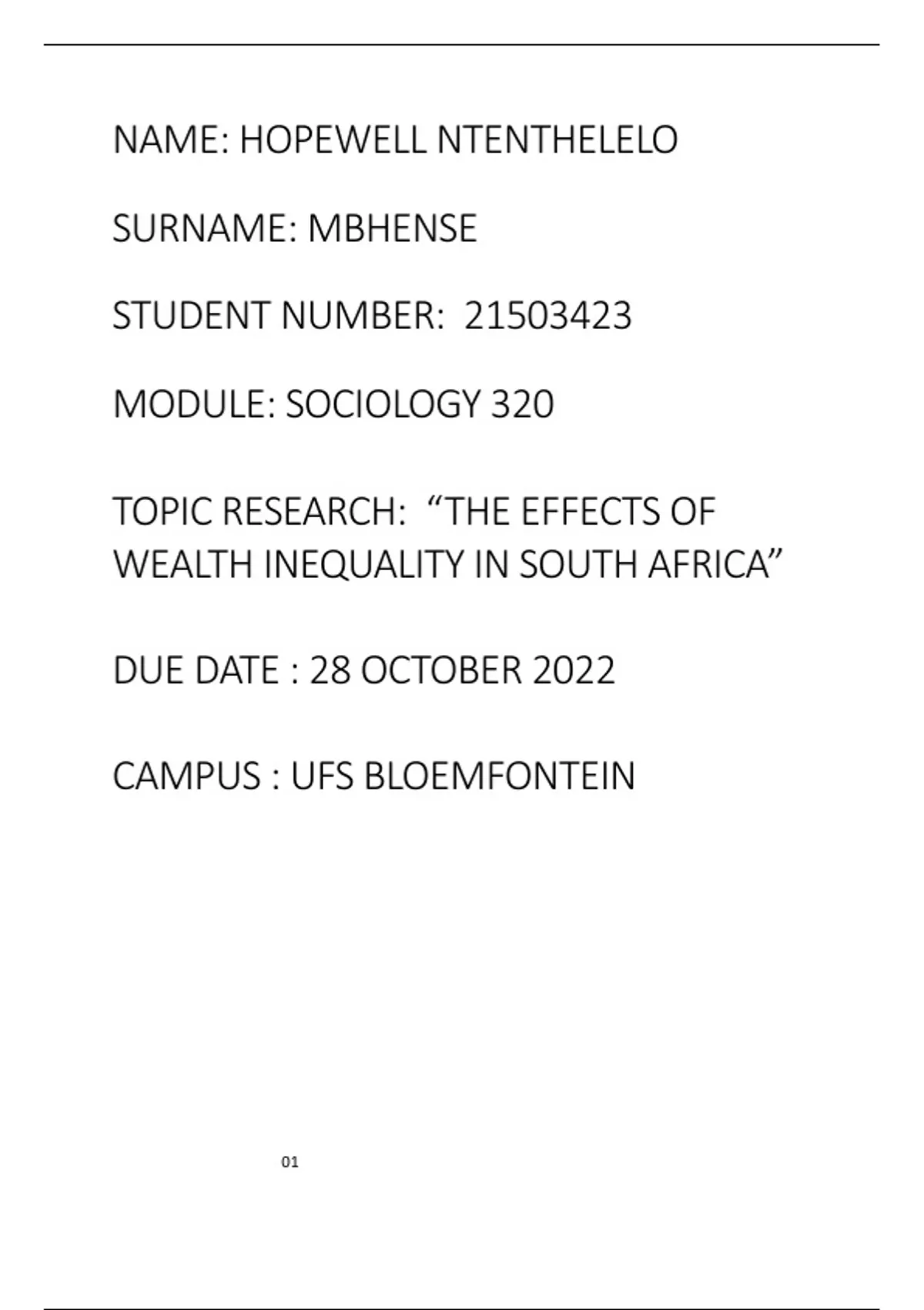 My topic is the effects of the wealth inequality in South Africa, so this study will de