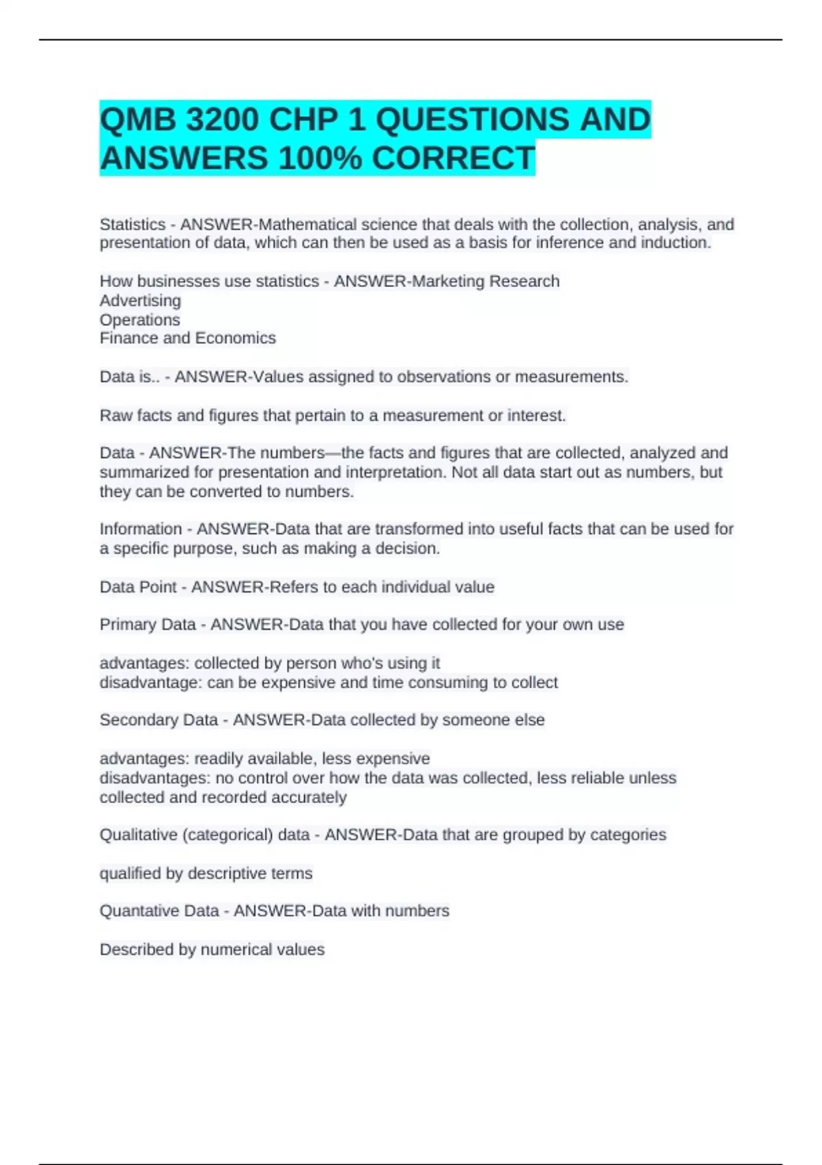 Quantative Data - ANSWER-Data with numbers