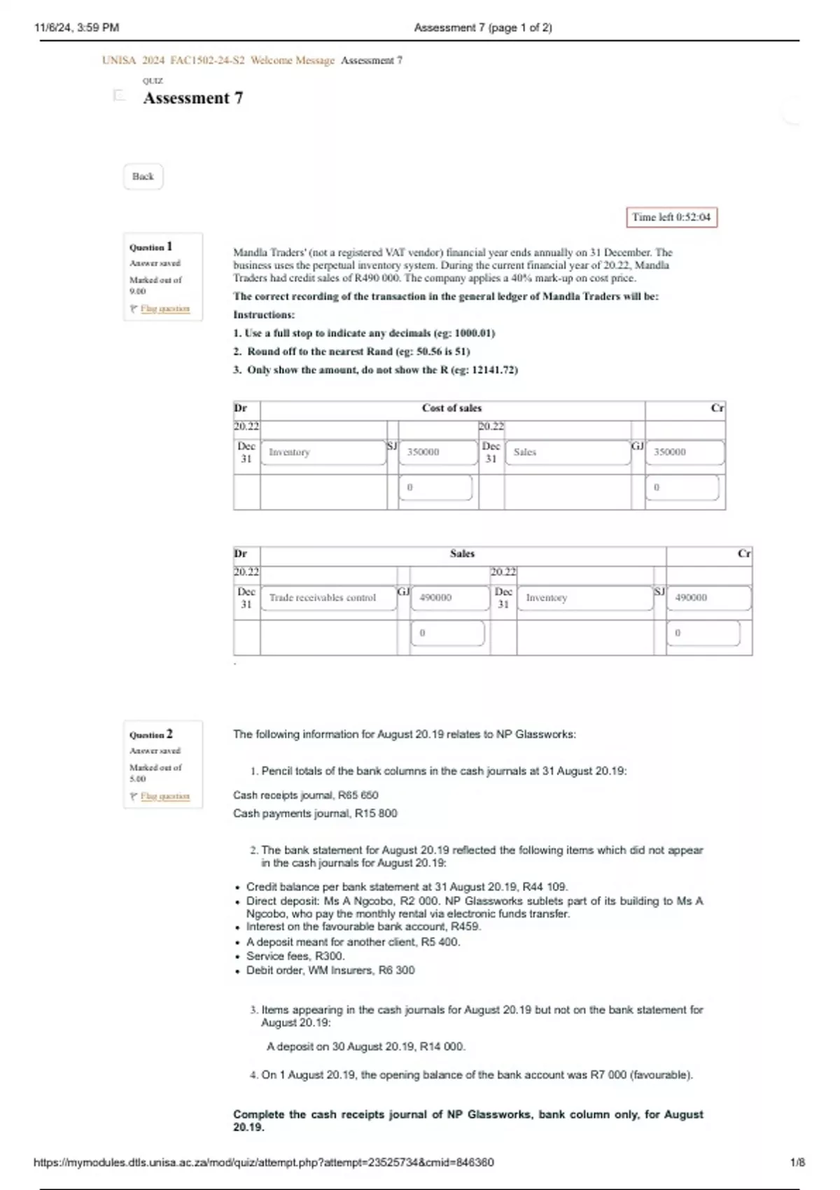 UNISA 2024 FAC1502-24-S2 Welcome Message Assessment 7