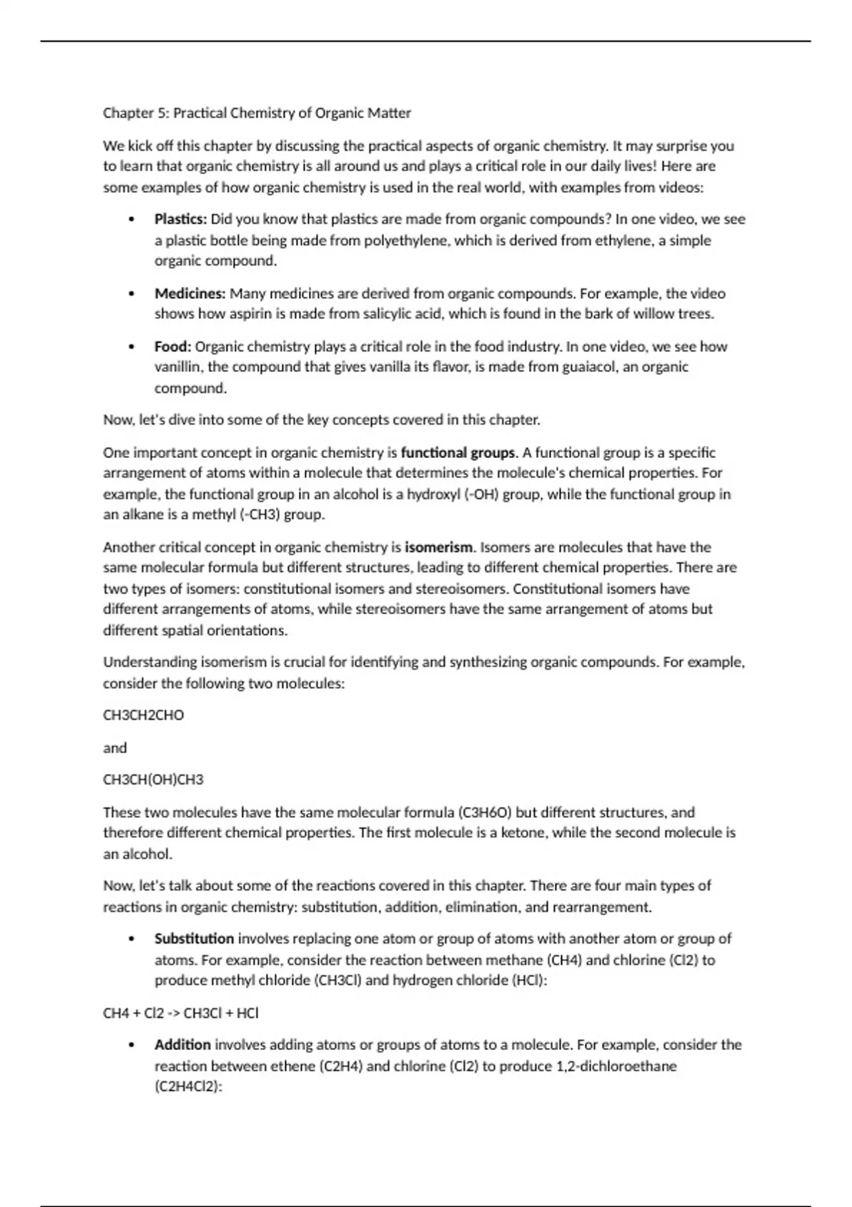 chemistry, including functional groups, isomerism, reactions, and experimental techniques. By
