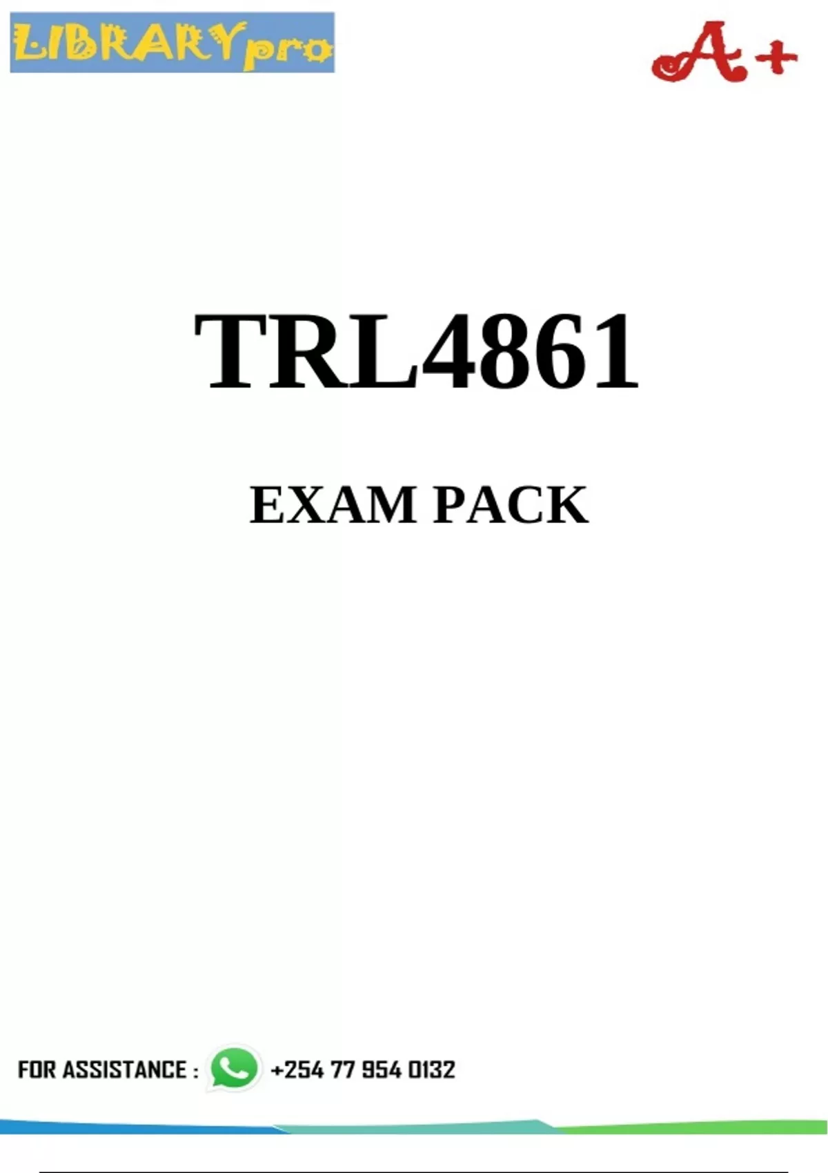 TRL4861 Latest exam pack questions and answers and summarized notes for exam preparation. Updated. For assistance call or W.h.a.t.s.a.p.p us on +/ 2/ 5/ 4 /7 /7 /9 /5 /4 /0 /1 /3 /2 .