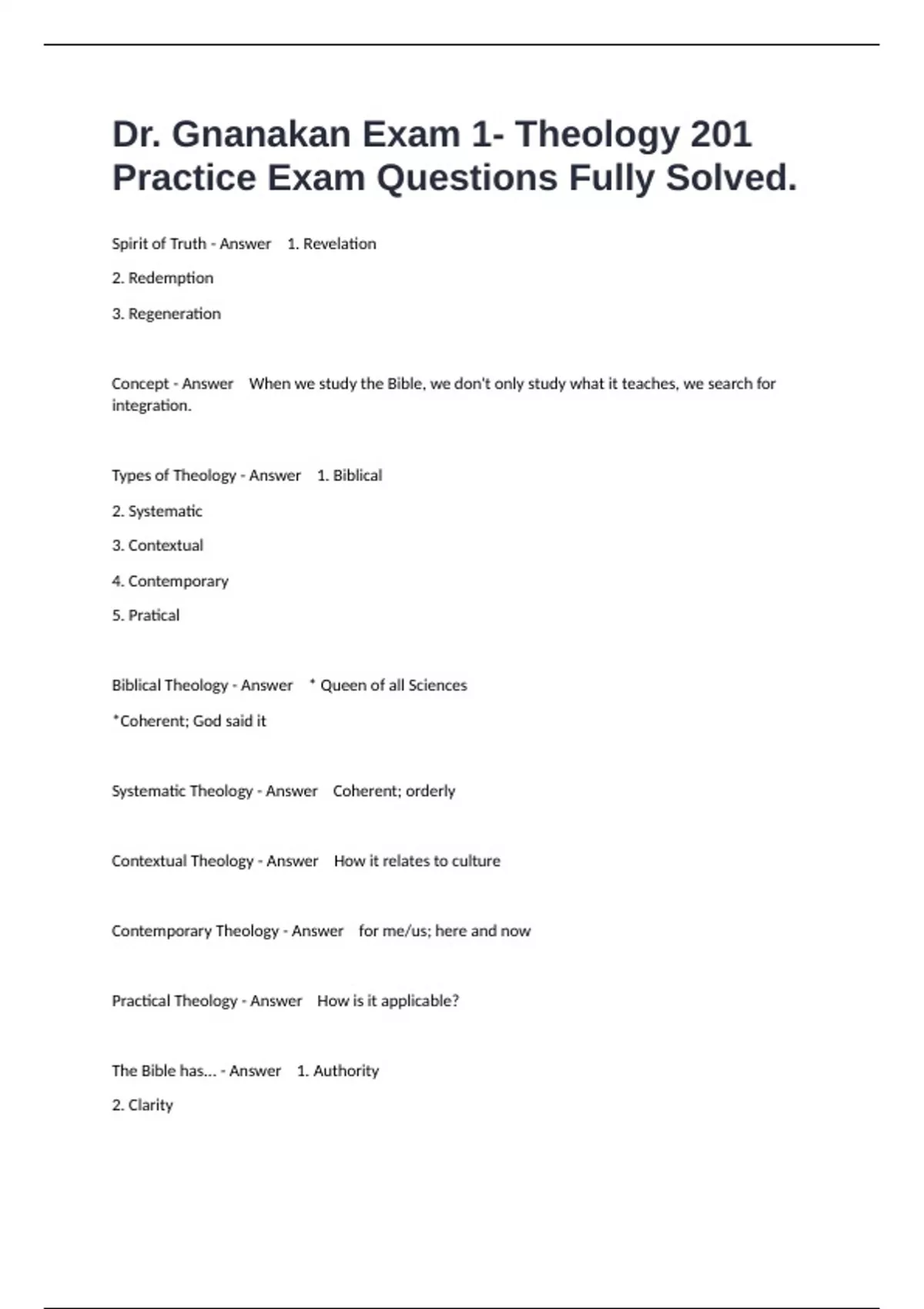 Types of Theology - Answer 1. Biblical