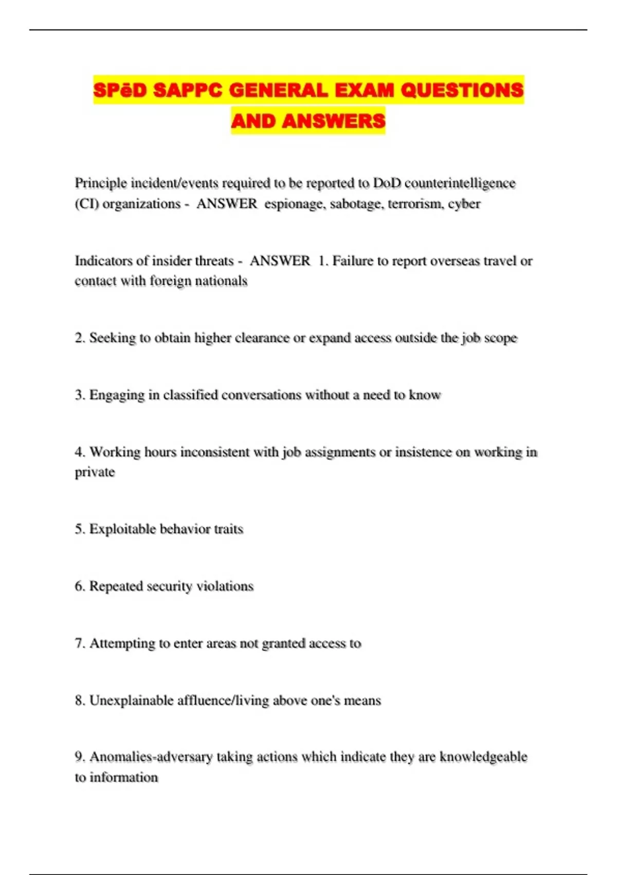 SPēD SAPPC GENERAL EXAM QUESTIONS