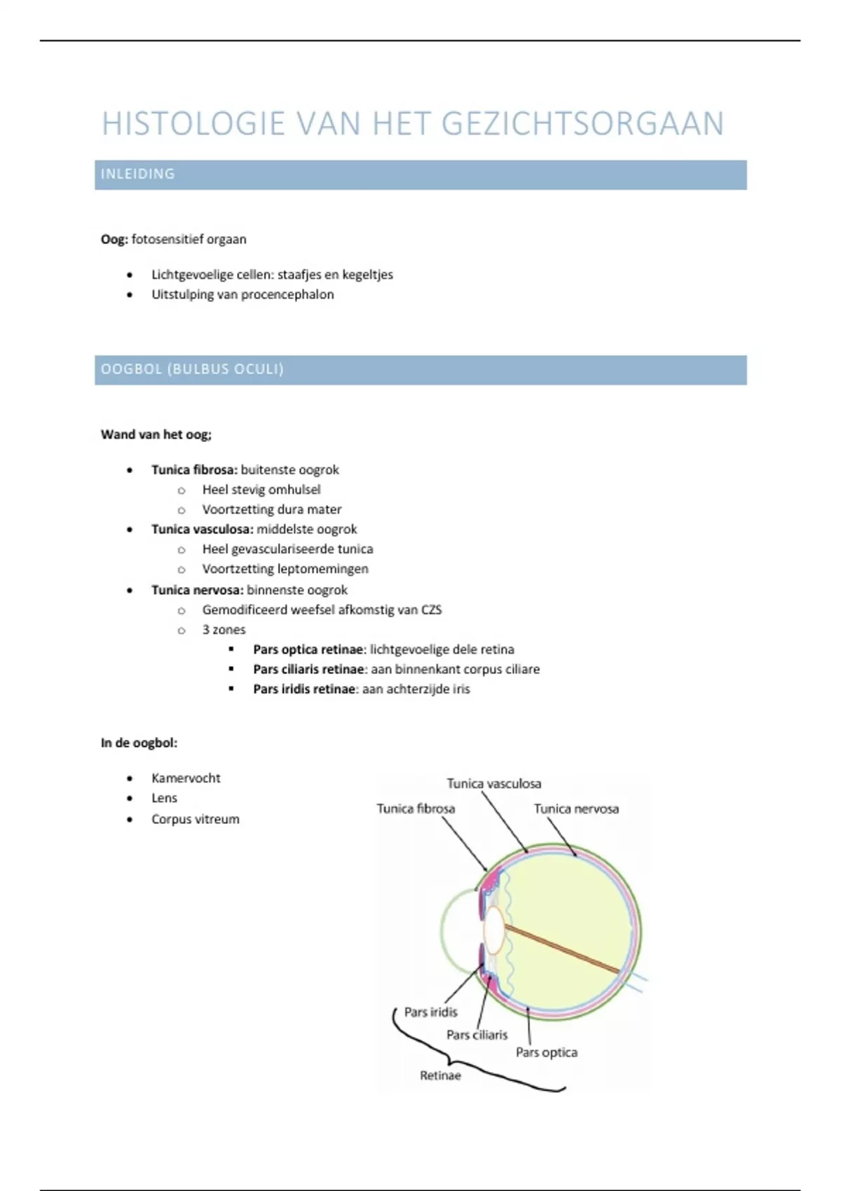 samenvatting - Histologie van het gezichtsorgaan