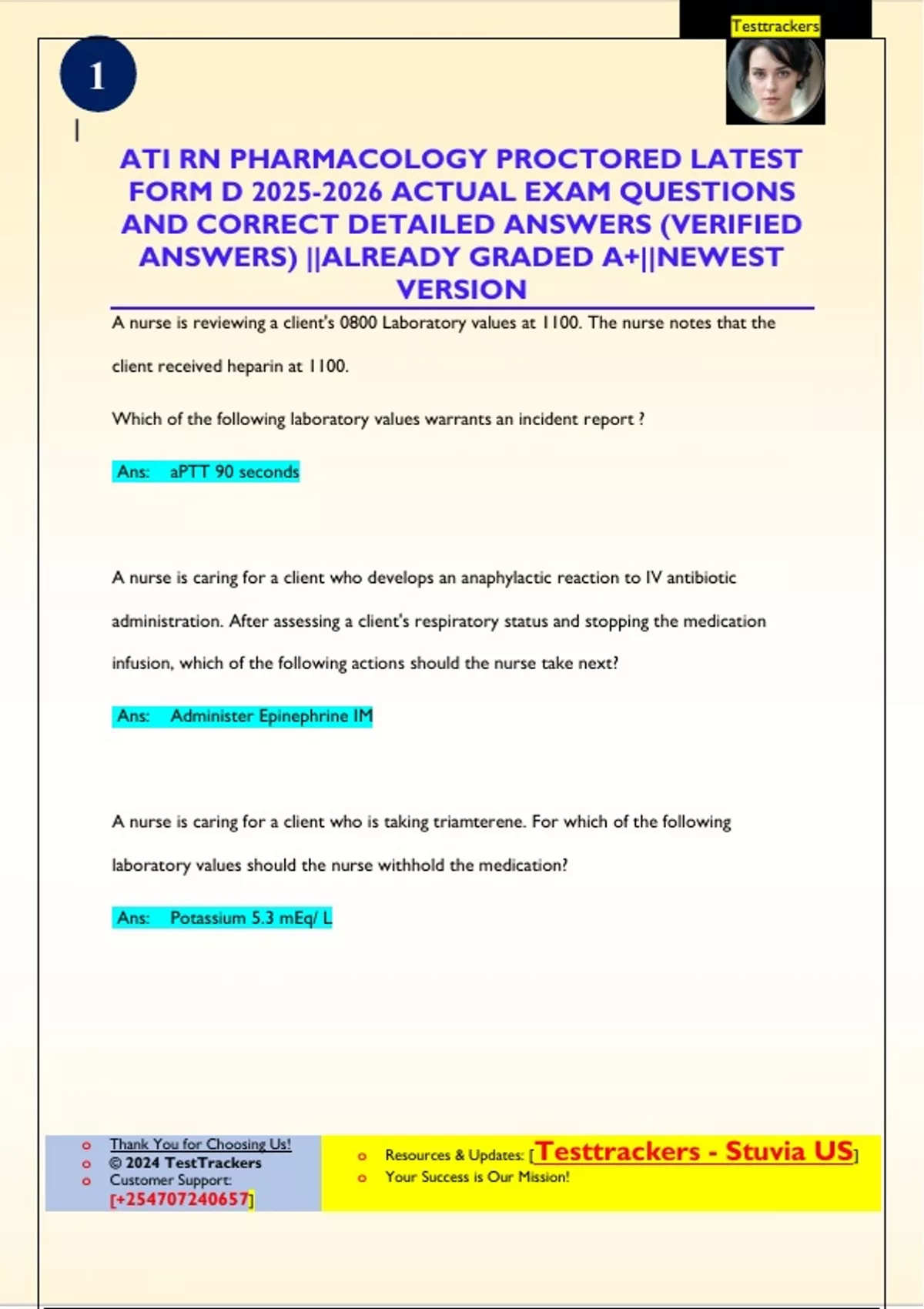 ATI RN PHARMACOLOGY PROCTORED LATEST