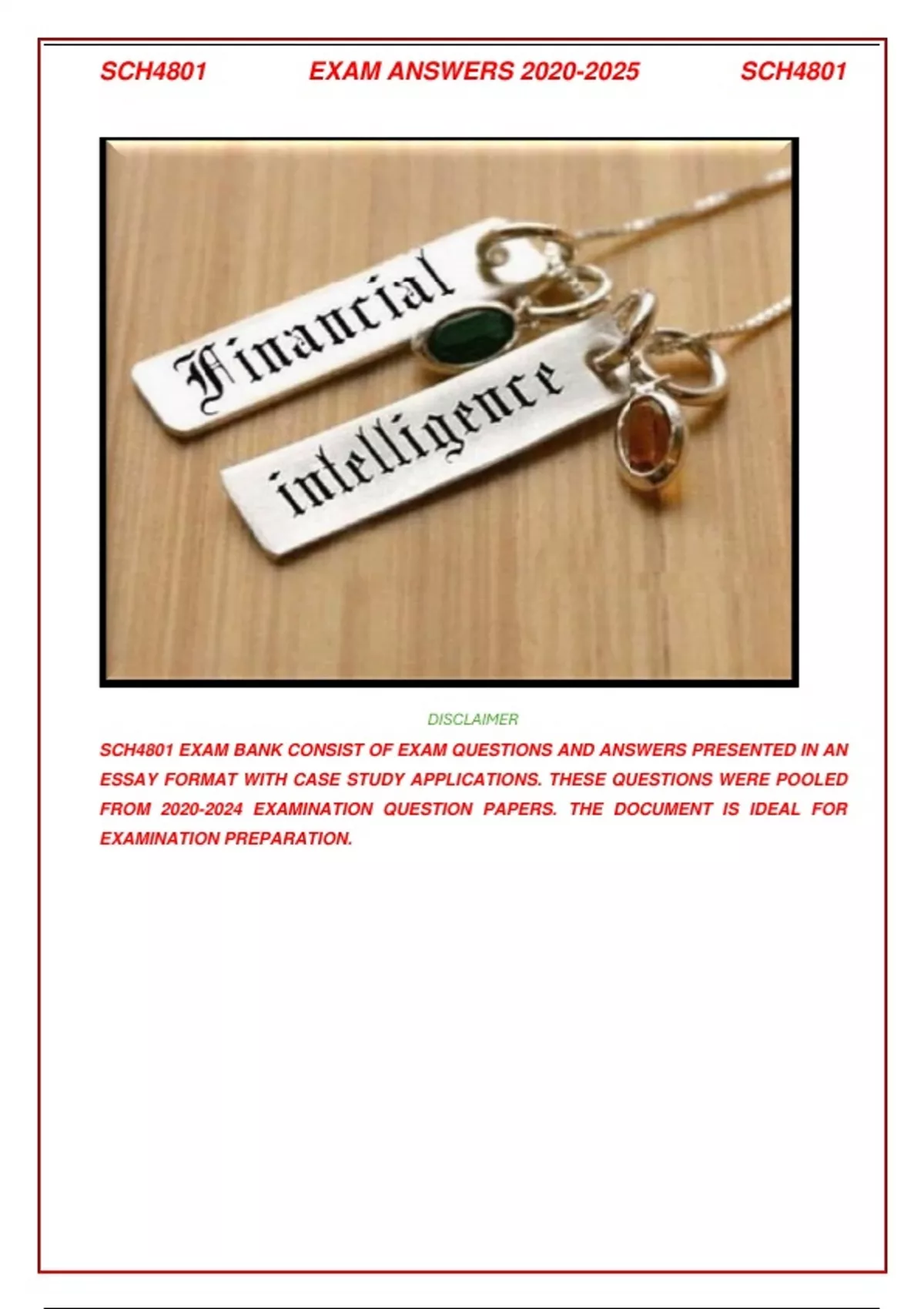 SCH4801 EXAM BANK CONSIST OF EXAM QUESTIONS AND ANSWERS PRESENTED IN AN