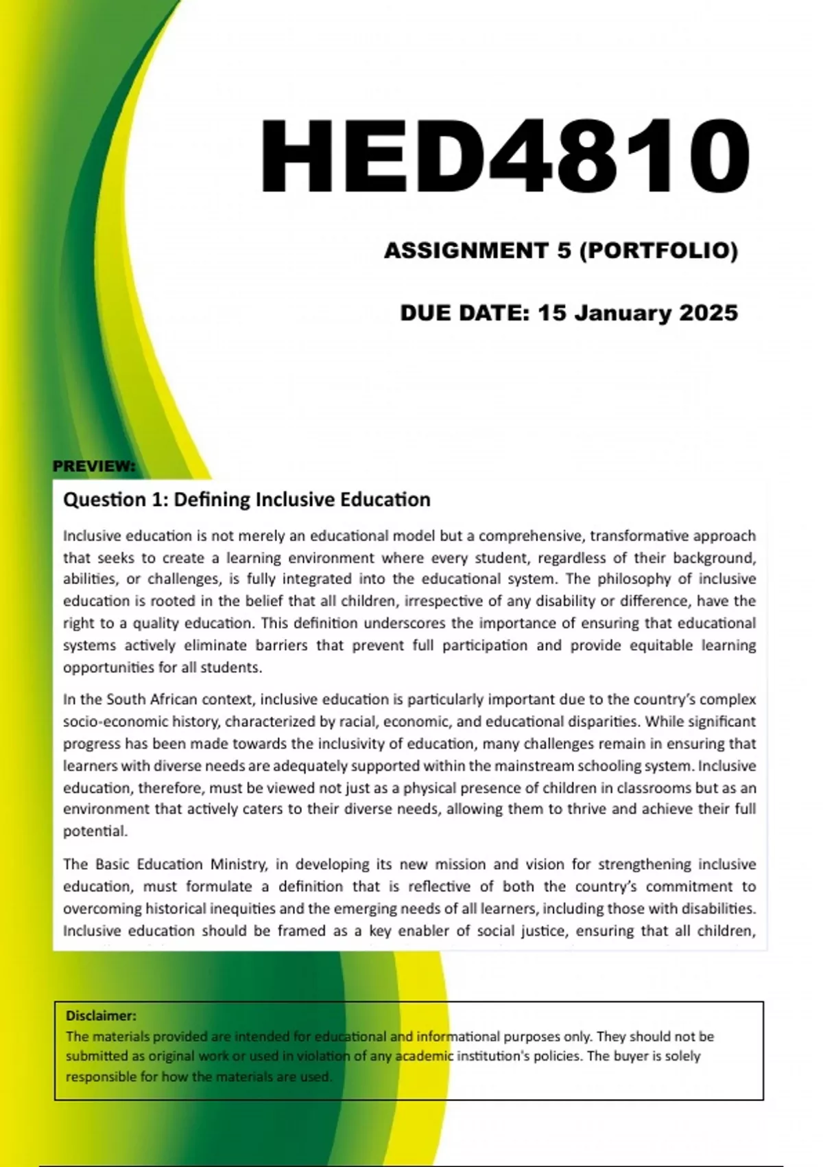 Question 1: Defining Inclusive Education