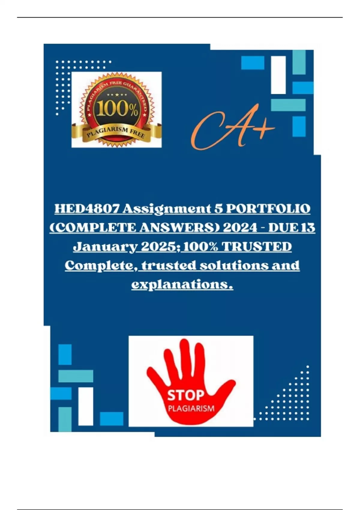 HED4807 Assignment 5 PORTFOLIO (COMPLETE ANSWERS) 2024 - DUE 13 January 2025; 100% TRUSTED Complete, trusted solutions and explanations